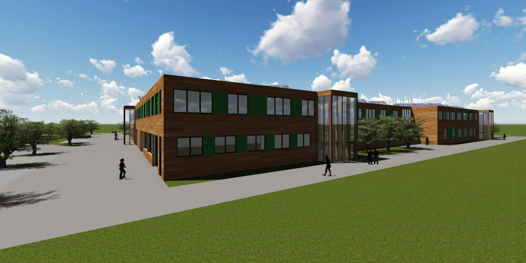 So stellt sich Jochen Kupp den Neubau vor, der zu den „modernsten Bildungszentren in NRW“ gehören soll.
