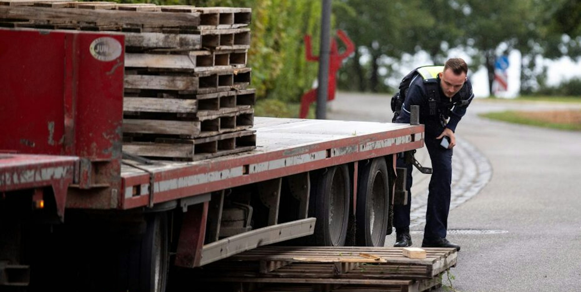 Zudem fielen nach Angaben eines Beamten an der Unfallstelle mehrere Paletten auf den 50-Jährigen. Der Niederländer hatte den Lkw am Seitenstreifen in Höhe der Kirche in Billig abgestellt. Zum Zeitpunkt des Unfalls war der Lkw bereits entladen.