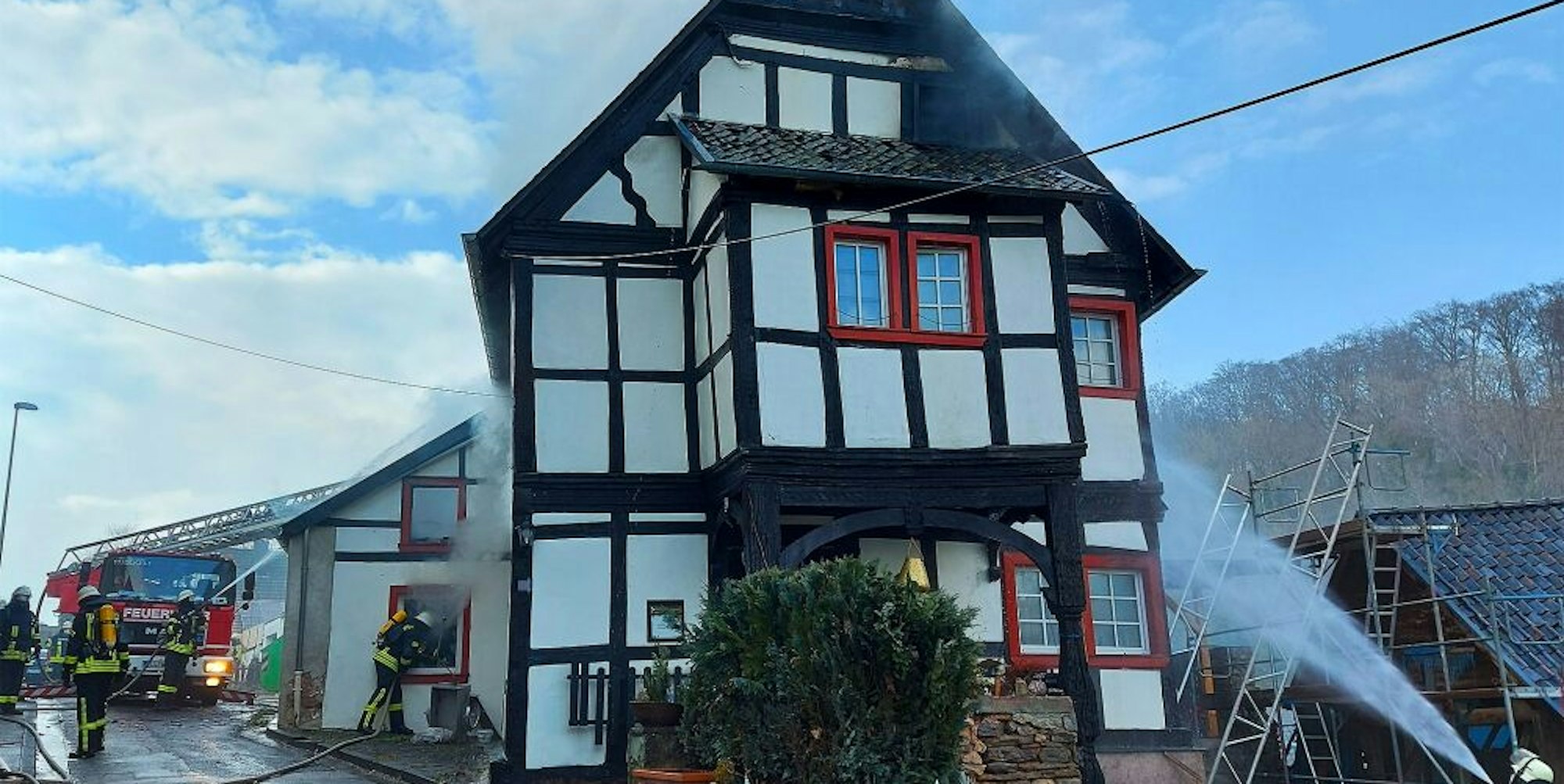 95 Feuerwehrleute im EinsatzBrand in denkmalgeschütztem Haus in Blankenheim