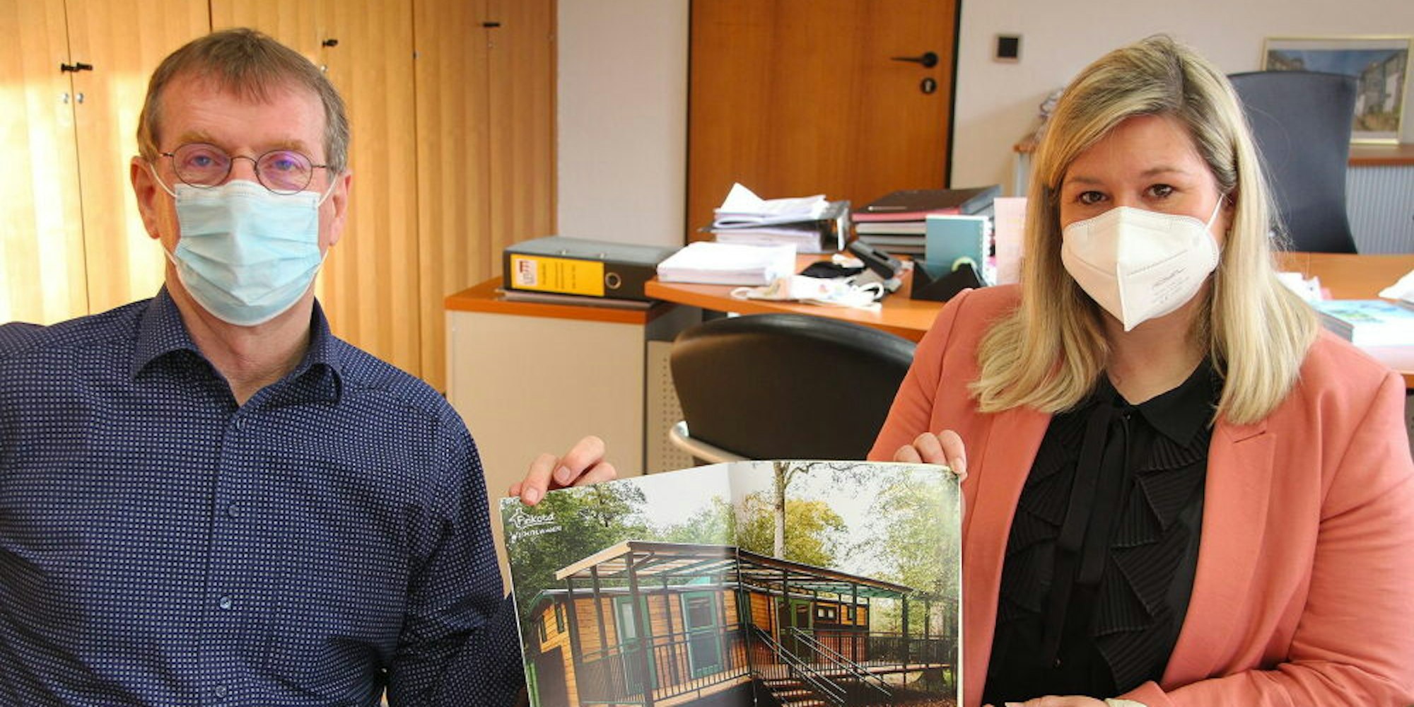 Blankenheims erster Waldkindergarten in der Trägerschaft des DRK wird in einem Bauwagen untergebracht. Die Gemeinde, hier Fachbereichsleiter Erwin Nelles und Bürgermeisterin Jennifer Meuren, hat schon einige Angebote gesichtet.