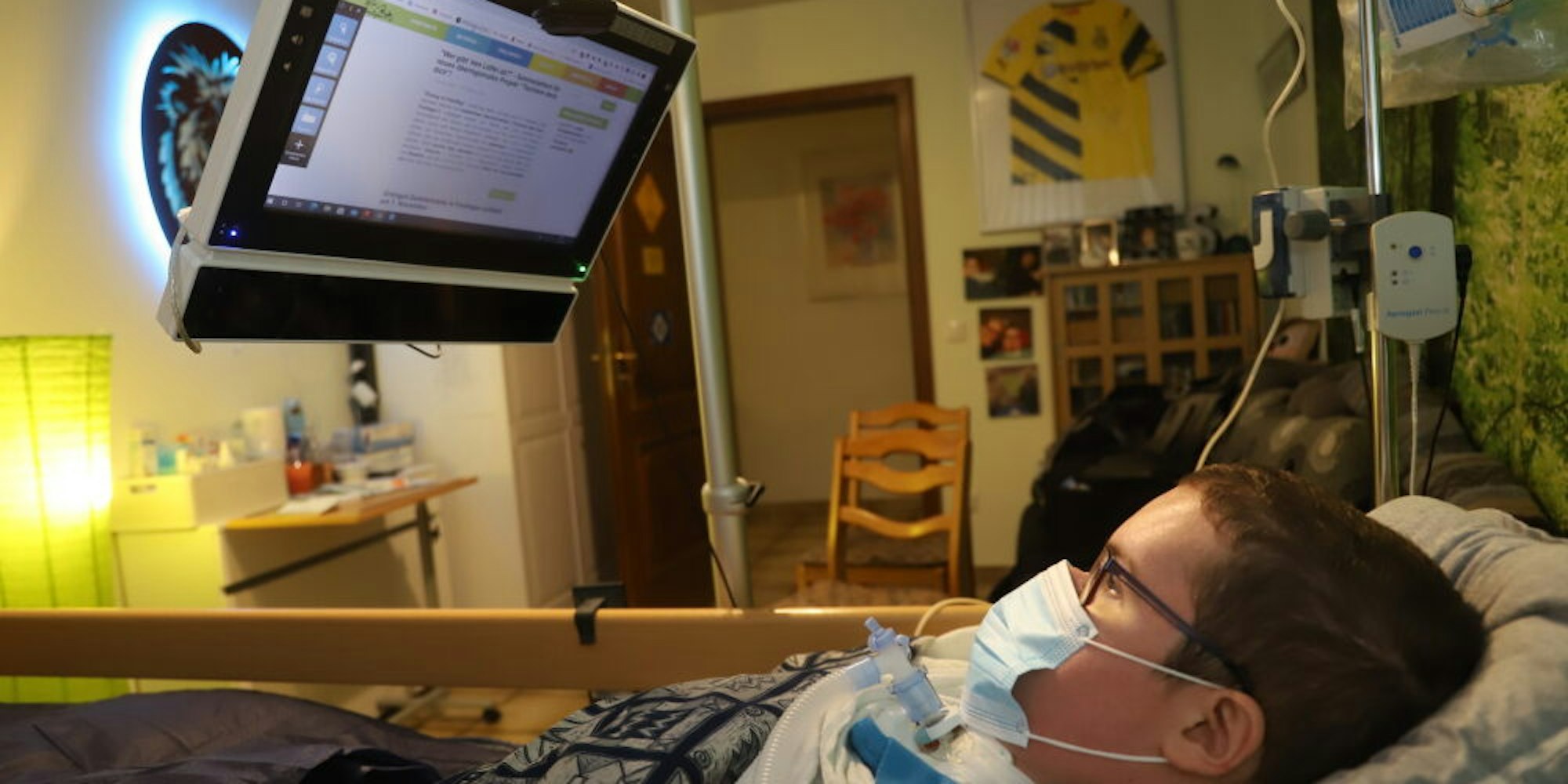 Simon Hellenthal ist vier Monate alt, als bei ihm Duchenne Muskeldystrophie diagnostiziert wird. Die Krankheit hat zunehmende Muskelschwäche bis hin zur völligen Bewegungslosigkeit zur Folge. So auch bei Simon. Heute kann der mittlerweile 28-jährige Arme und Beine nicht mehr bewegen, benötigt Pflege rund um die Uhr, muss im Rollstuhl geschoben und beatmet werden.
