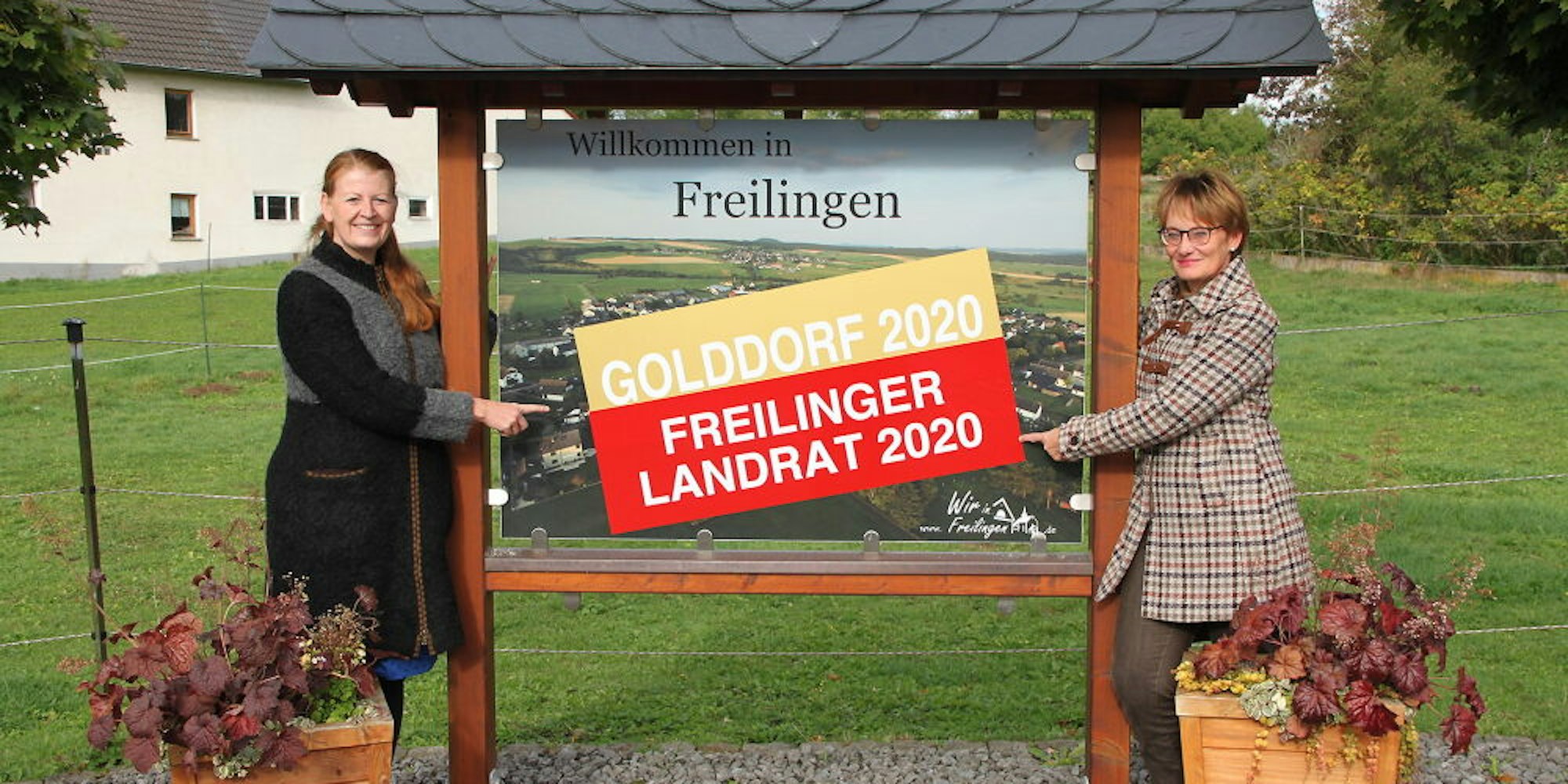 „Herzlichen Glückwunsch!“ Simone Böhm, Noch-Ortsvorsteherin in Freilingen, war den ganzen Montag Tag nach Gratulation zu Mute. Wäre da nicht der Corona-Sicherheitsabstand zu wahren, sie hätte wohl hunderte Hände geschüttelt. Allen Freilingern sei doch zum Doppelsieg zu gratulieren, sagt Böhm am „Willkommen“-Schild am Ortseingang. Gleich zweimal innerhalb von drei Tagen ist das mit frischen Bannern überklebt worden.
