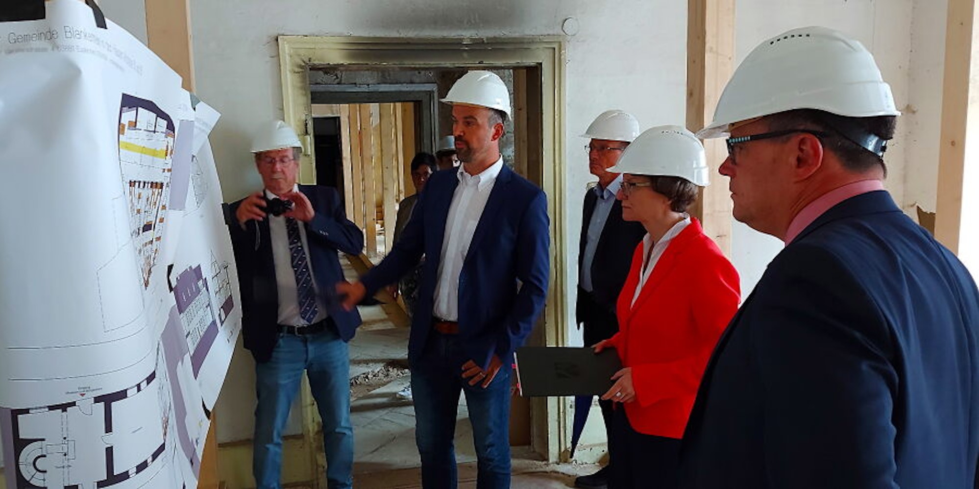Die Pläne für den Umbau des denkmalgeschützten Gebäudes zum Blankenheimer Rathaus erklärte Guido Waters (Mitte) NRW-Ministerin Ina Scharrenbach.