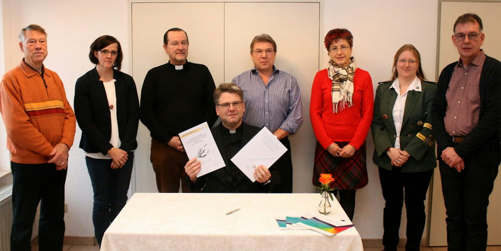 Mehr als zwei Jahre dauerten die Vorarbeiten, in deren Rahmen alle Pfarrgemeinderäte, Kirchenvorstände und Jugendgruppenleiter gehört und in die Ausarbeitung der Papiere eingebunden wurden. Im Pfarrheim von Blankenheimerdorf zeigten sich die Verantwortlichen erleichtert, dass diese umfangreiche Arbeit nun abgeschlossen ist und die Konzepte in einer kleinen Feierstunde unterzeichnet wurden. Für die GdG unterzeichneten Pfarrer und GdG-Leiter Andreas Züll, Pfarrer Matthäus Zuska, Erich Dederichs, der zweite Vorsitzende des Kirchengemeindeverbands, die GdG-Ratsvorsitzende Birgit Wolff und stellvertretend für alle Schützenbruderschaften im Diözesanverband Sabine Klöcker aus Rohr-Lindweiler.