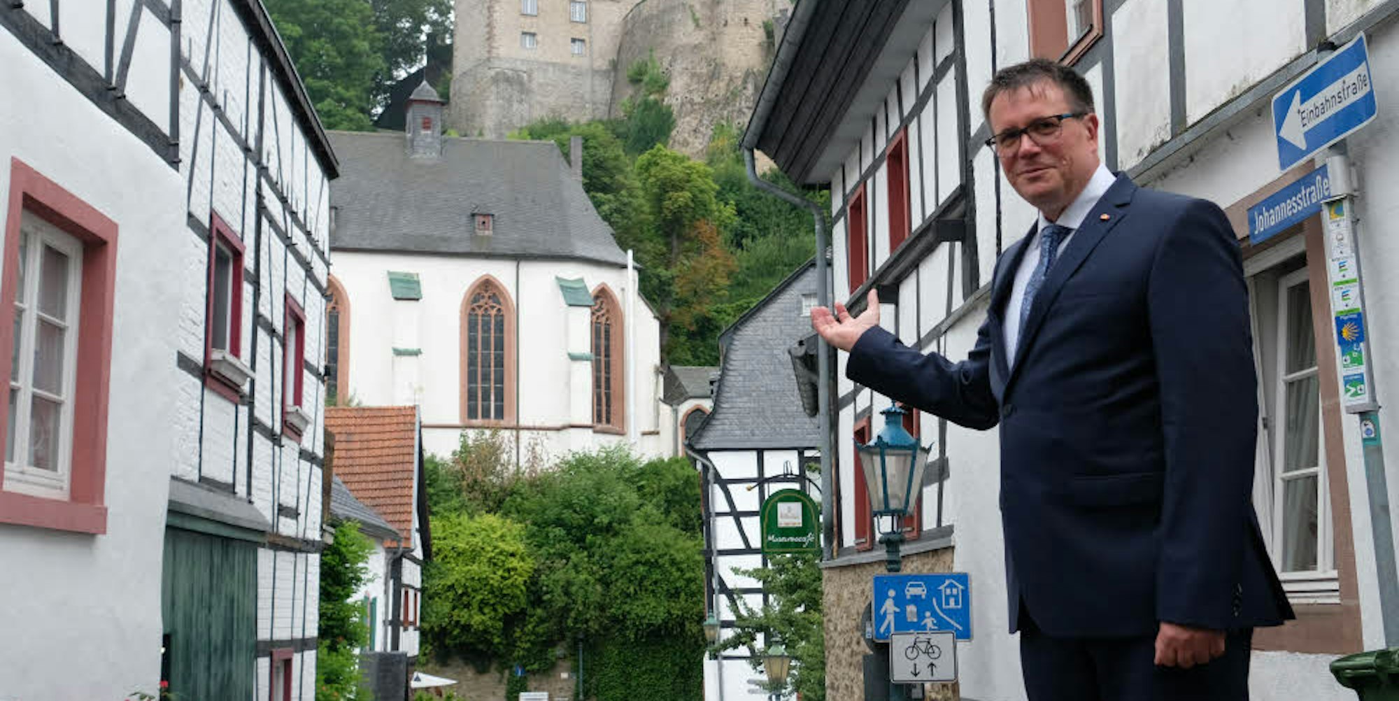 „Blankenheim ist eine einzigartige Gemeinde“, sagt Bürgermeister Rolf Hartmann mit Blick auf Kirche und Burg. Er kündigte an, dass er nach 16 Jahren nicht mehr kandidieren werde.