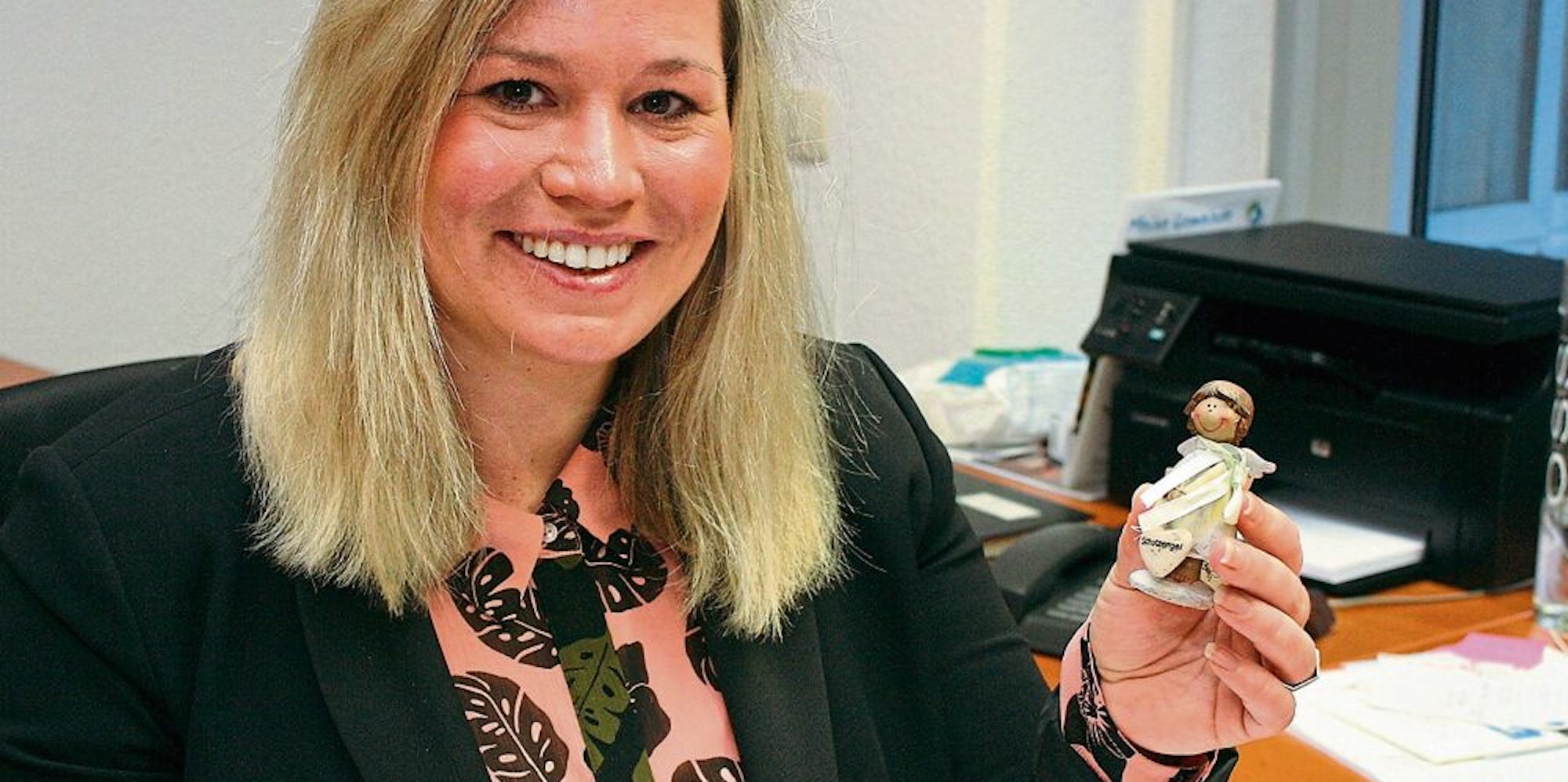 Den kleinen Schutzengel hat Jennifer Meuren als persönliches Mitbringsel in ihrem Büro aufgestellt.
