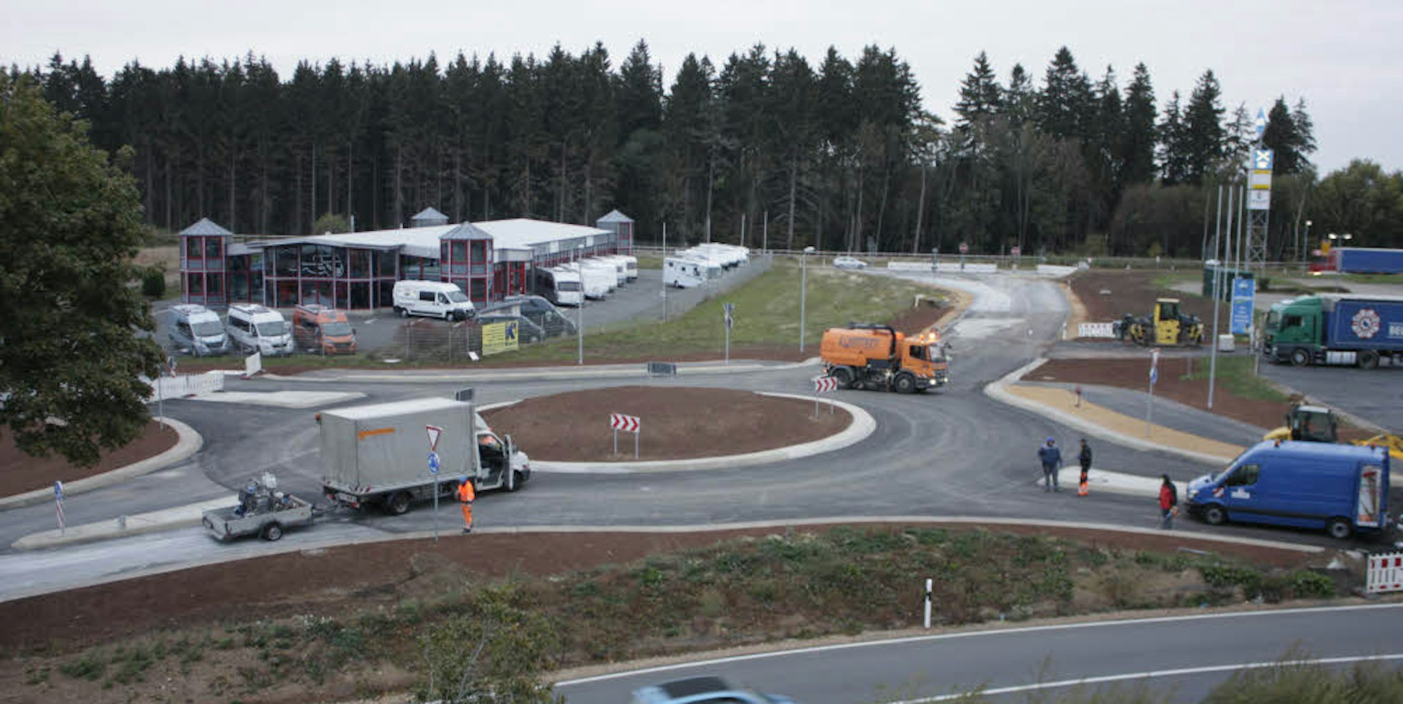„Es müssen nur noch kleinere Restarbeiten erledigt werden, dann ist der Kreisverkehr im Gewerbegebiet fertig“, bestätigte Andreas Groß, Projektleiter in der Niederlassung Euskirchen des Landesbetriebs Straßen NRW auf Nachfrage dieser Zeitung. Dieser Kreisverkehr liegt vor der Tankstelle, er ersetzt die frühere Einmündung der Straßen Am Mürel und Mülheimer Heide in die B 258. Dort kam es wegen des starken Lkw-Verkehrs von und zur Tankstelle regelmäßig zu Staus.