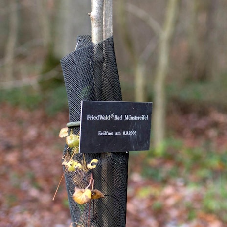 Name kann am Baumstamm angebracht werden