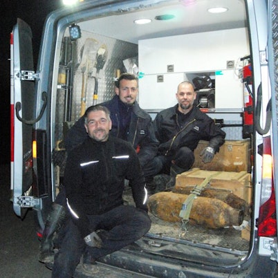 Die Überreste der Fliegerbombe verfrachteten Stefan Höreth (l.) und Christoph Wassenberg in ihr Fahrzeug.