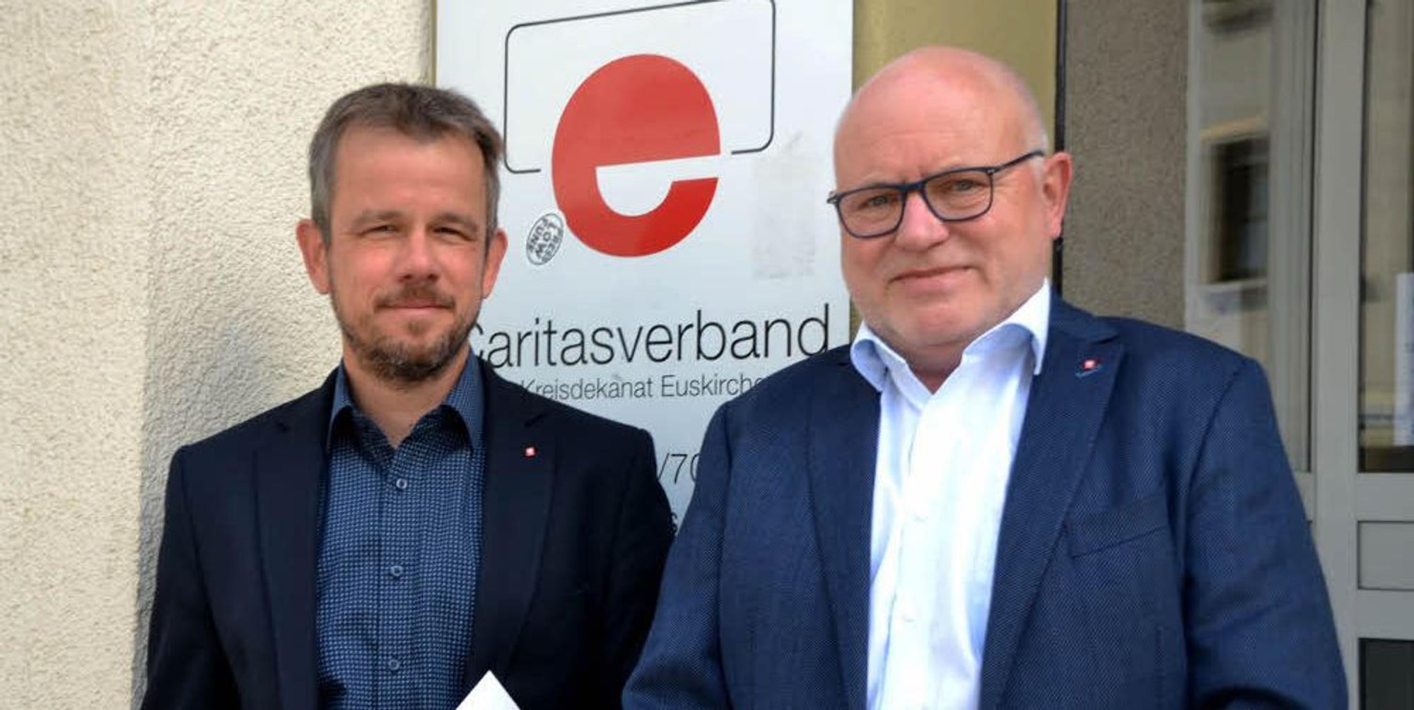 Nach einem Jahr im Amt präsentierten der Vorstandsvorsitzende des Caritasverbandes Euskirchen, Martin Jost (l.), und sein Stellvertreter Bernhard Becker den Jahresbericht 2018.