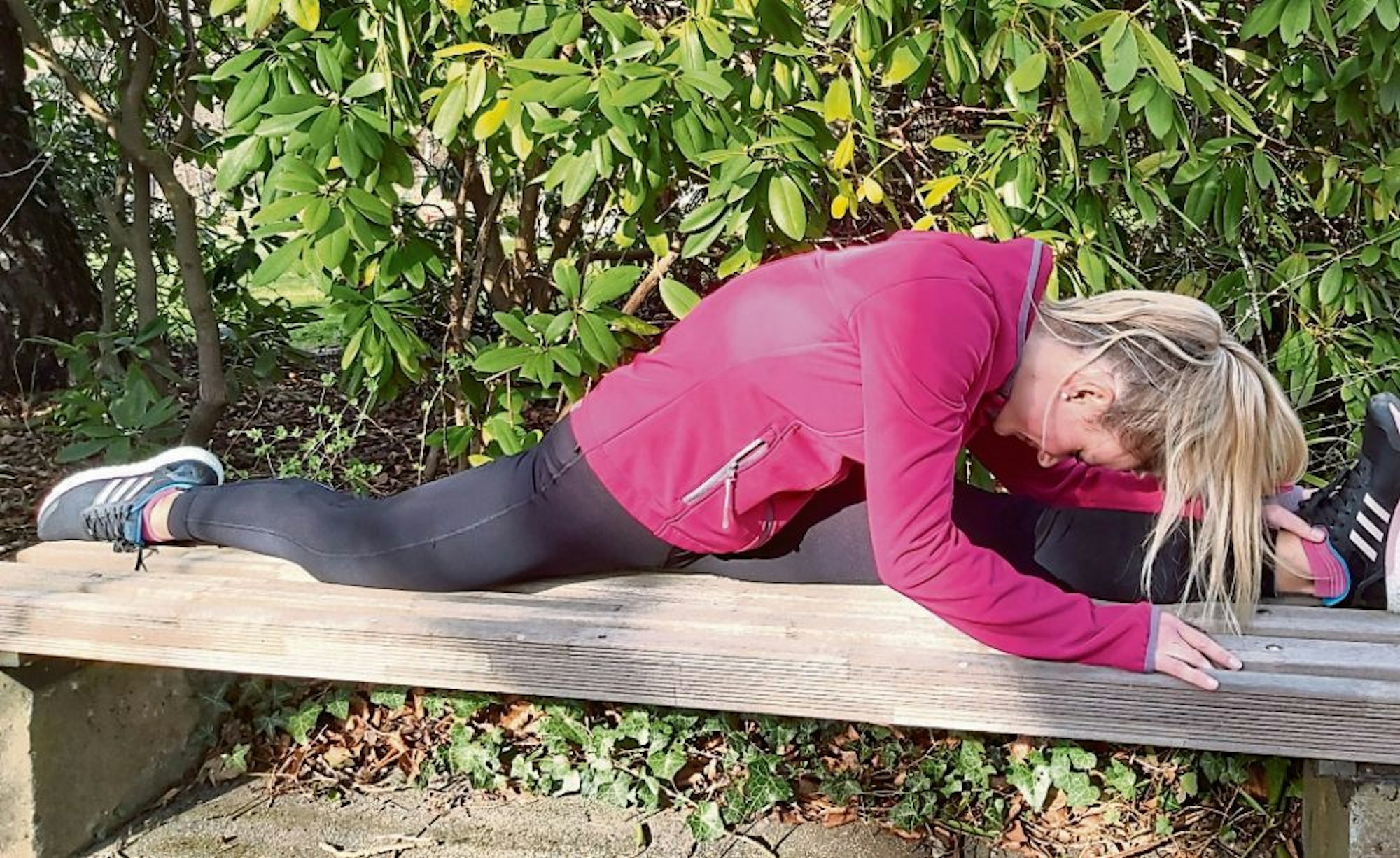 Dreimal in der Woche geht Jessica Rau joggen. Danach finden ausgiebige Dehnübungen statt.