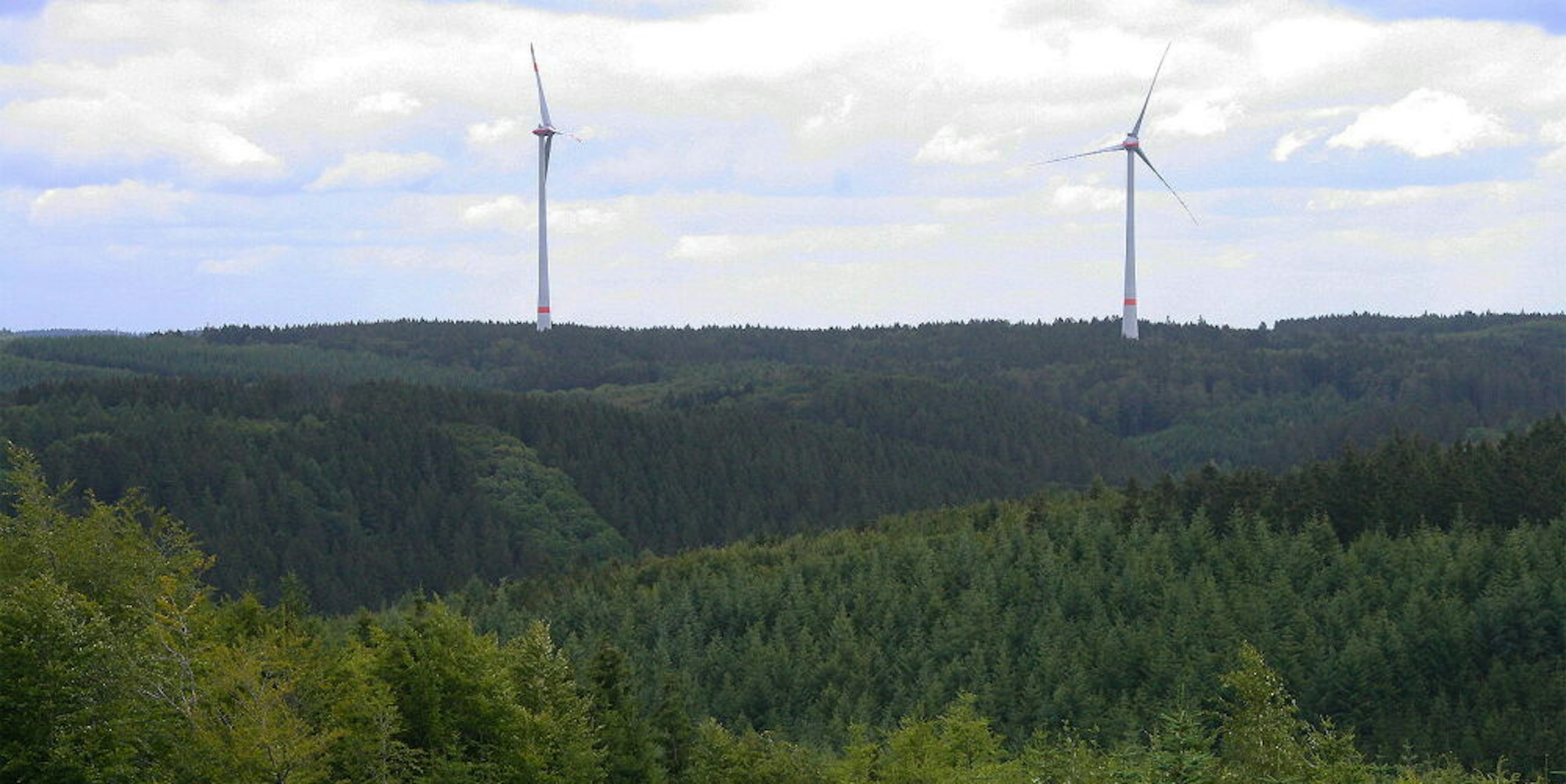 Der Blick auf die neuen Windkraftanlagen von Dahlem IV oberhalb des Rotbachtals.