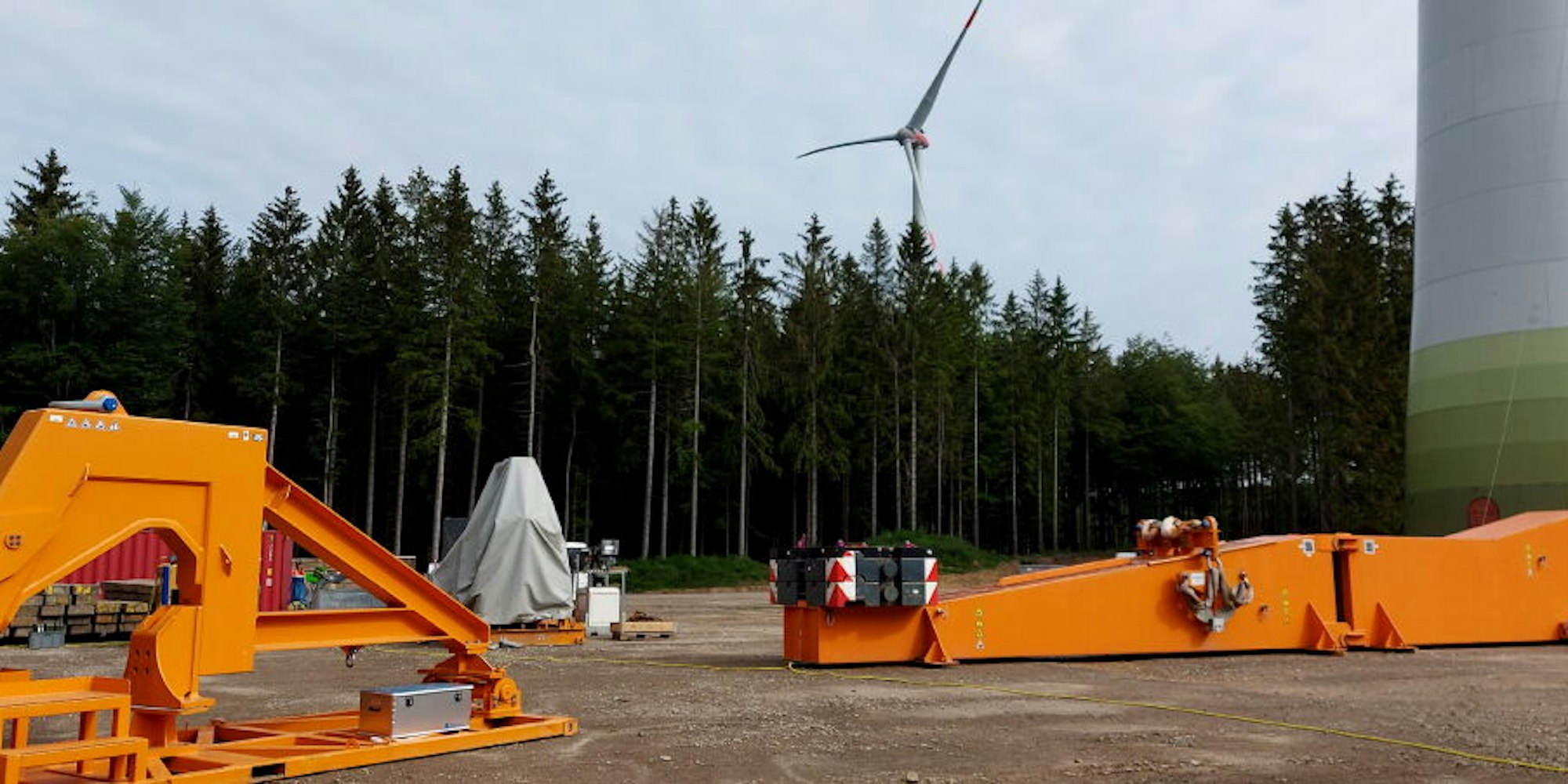 Zwei von drei strittigen Windenergieanlagen oberhalb des Rotbachtals sind betriebsbereit, dürfen aber nach dem Beschluss in Münster nicht ans Netz. Die dritte Anlage steht kurz vor der Fertigstellung.
