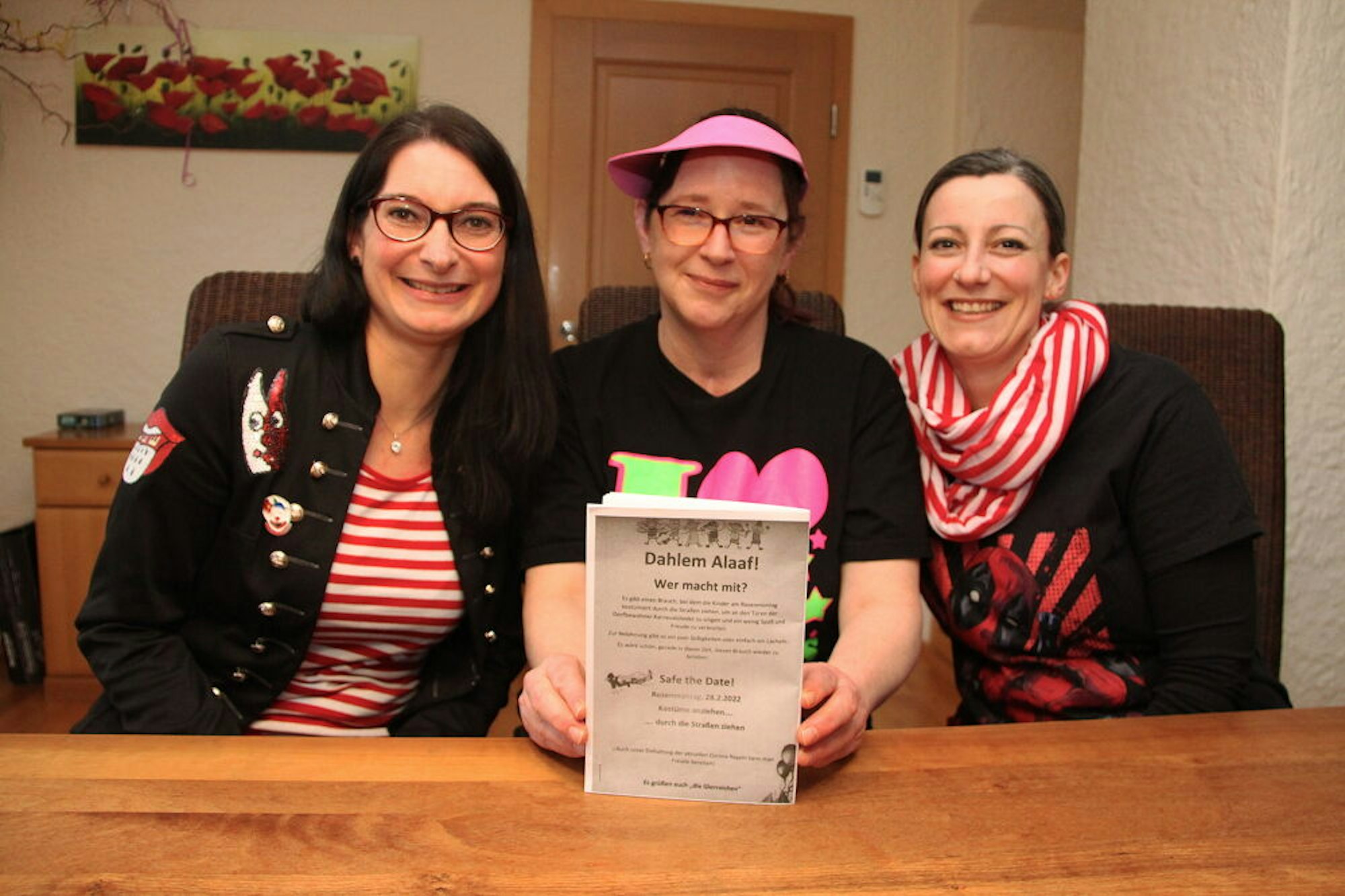 In diesem Jahr gibt es keinen Zoch – doch Bianca Klinkhammer, Ramona Weyres und Nicole Lennartz lassen sich deshalb den Karneval nicht verbieten. „Wir wollen den alten Brauch des Hausbesuchs von Kindern an Rosenmontag wiederbeleben“, so Klinkhammer. Einst ist es auch in Dahlem wie in vielen Eifeldörfern üblich gewesen, dass die kleinen Jecken um Süßes bitten und manchmal auch kleine Geldgeschenke erhalten. Irgendwann ist das Brauchtum allerdings auch in Dahlem ausgestorben.