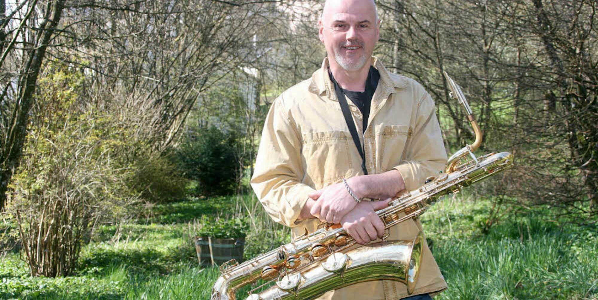 Jazzer im Garten: Frank Reinshagen, Musiker, Komponist und Big-Band-Leiter, liebt die Stille in Kronenburg.