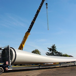 Was die beiden, unterstützt von den Einweisern per Funk, bewegen, ist eine Inter-Combi SP mit Rotorblattadapter Generation 4, erklärt die Pressestelle der TII-Group in Pfedelbach bei Stuttgart. Dort sitzt der nach eigenen Angaben Weltmarktführer bei selbstangetriebenen Schwerlastfahrzeugen, sogenannten SPMT. Eine Unterform ist die Inter-Combi, die das Tochterunternehmen Scheuerl an das auf komplexe Kranarbeiten spezialisierte Unternehmen Steil aus Trier verkauft hat.