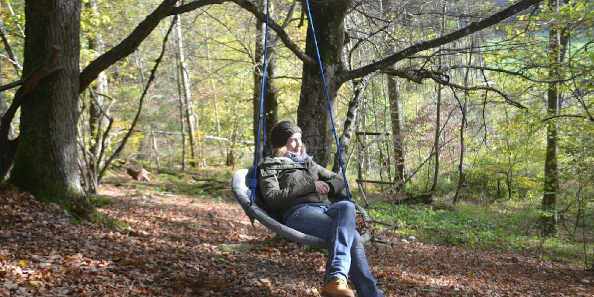 Die Korbschaukel ist ihr Lieblingsort im Wald: Jungjägerin Jessica Faßbender genießt das Leben in der Natur.