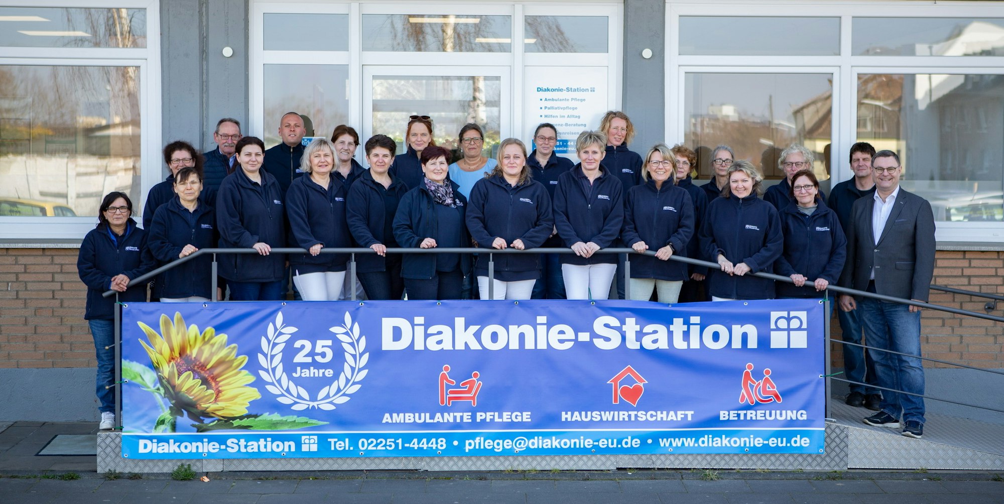Seit 25 Jahren ist das Team der Diakonie-Station nun schon im Einsatz, um alte, kranke und sterbende Menschen zu pflegen und zu begleiten. Entstanden ist die Diakonie-Station aus der früheren Gemeindeschwestern-Station der Evangelischen Kirchengemeinde Euskirchen. Zunächst beteiligten sich die Kirchengemeinden Euskirchen, Zülpich und Flamersheim an der Sozialstation, ab 2007 dann auch die Kirchengemeinden Bad Münstereifel und Weilerswist dazu. 1997 waren drei Gemeindeschwestern unter der Leitung von Inge Maus im Einsatz, drei Jahre später übernahm Walter Steinberger als neuer Pflegedienstleiter die Diakonie-Station mit inzwischen fünf Mitarbeiterinnen und 30 Patienten. Steinberger ist geblieben – bis heute, jedoch zählt das Team der Diakonie-Station mittlerweile knapp 150 Mitarbeitende, die 1150 Patienten pflegen und betreuen – und zwar 365 Tage im Jahr.