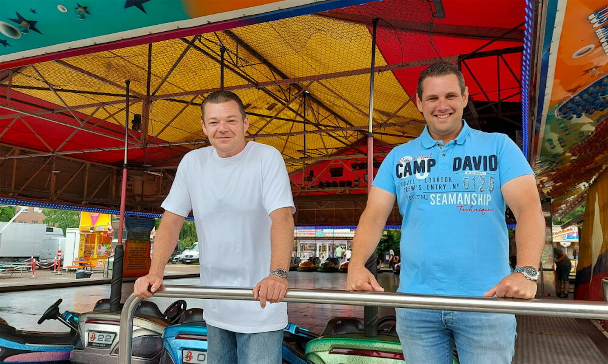 Trotz des Starts mit Haken und Ösen bleiben Günther Hündgen (l.) und Schaustellerkollege Peter Barth zuversichtlich für den „Happy Park“.