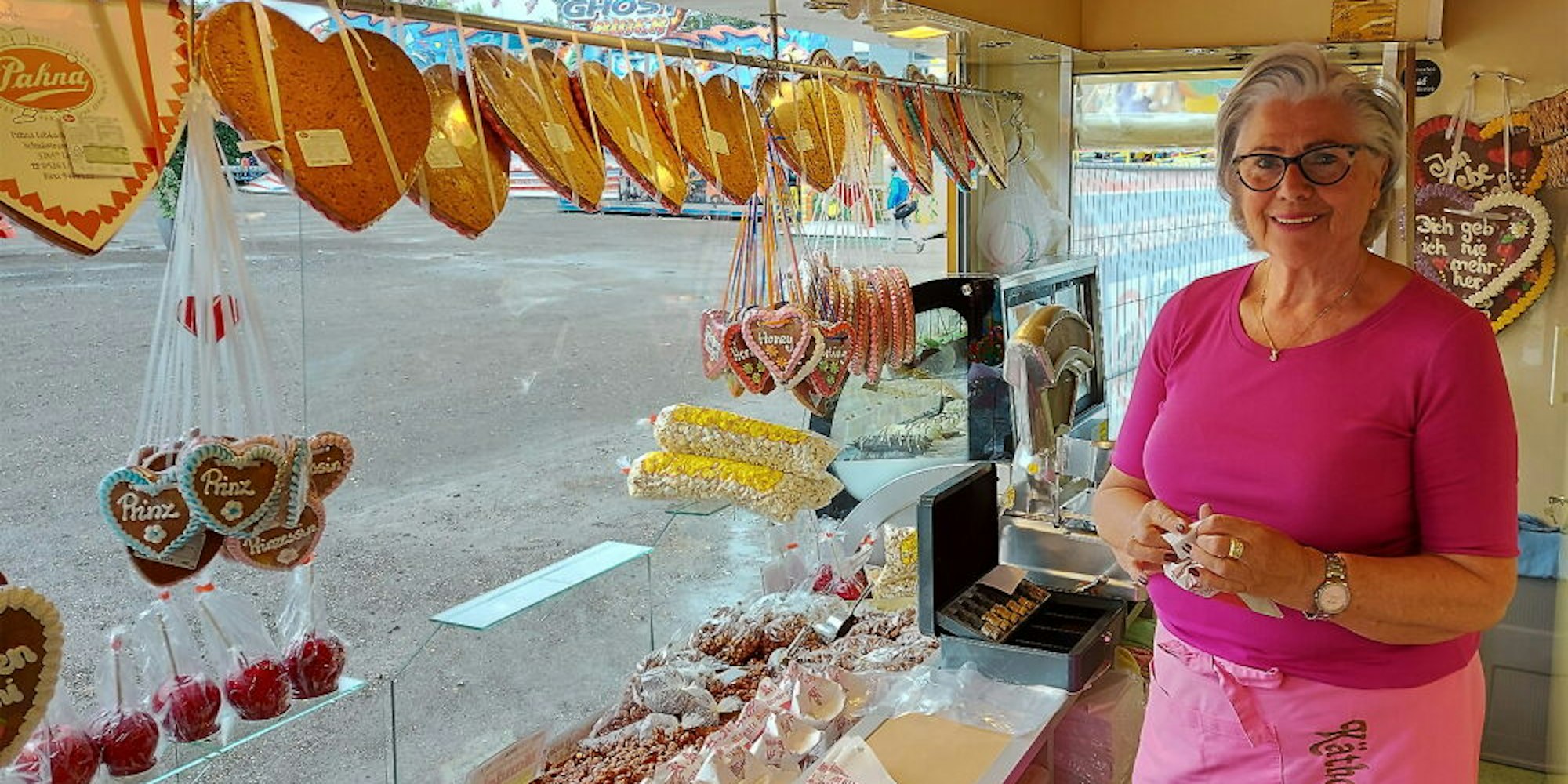 Mit ihrem Wagen voller Naschereien ist Käthchen Schmitz Teil der Pop-Up Kirmes in Euskirchen.