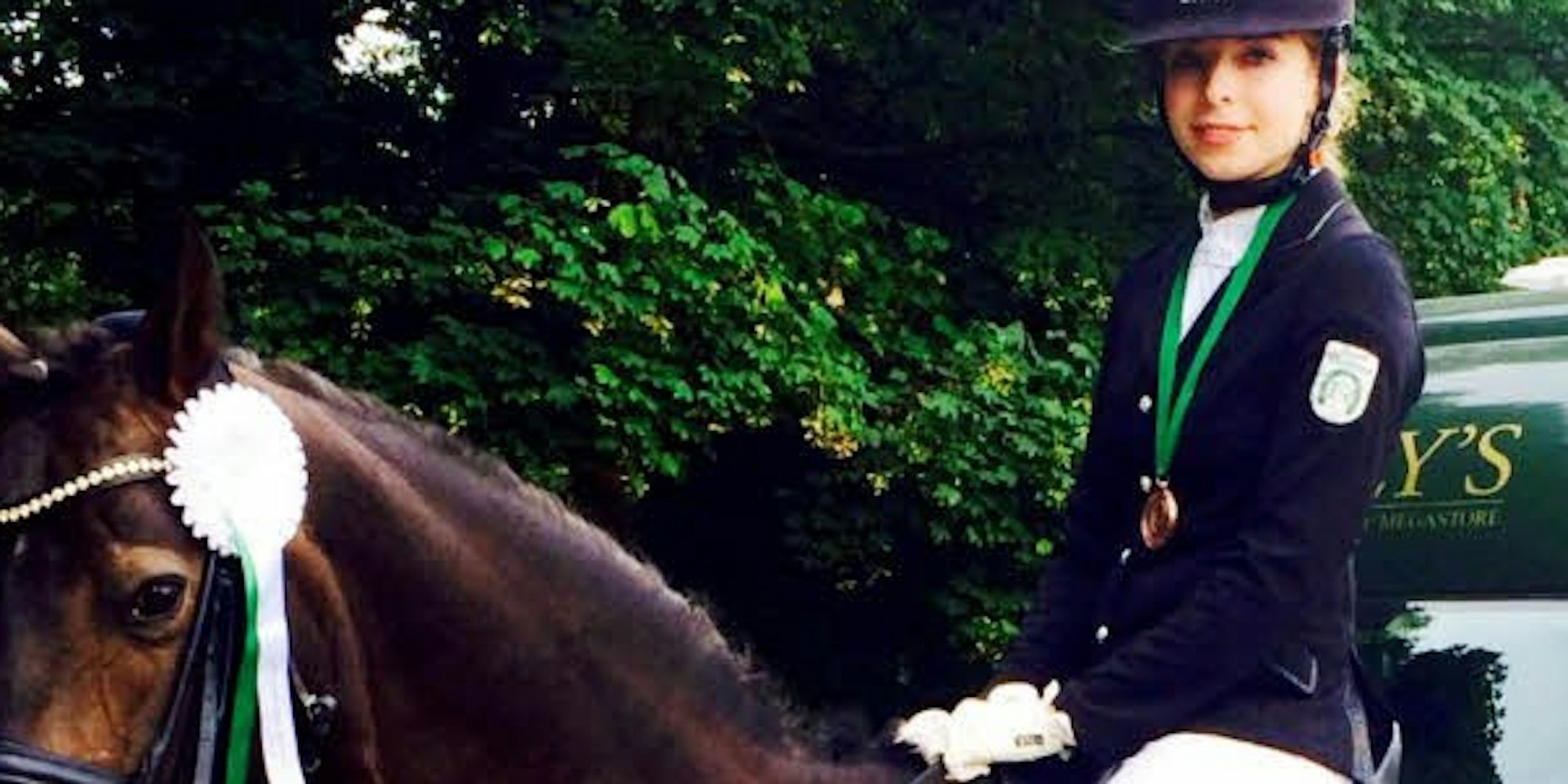 Bei den Rheinischen Meisterschaften kam sie mit „Charon“ in der Gesamtwertung auf Platz drei der Junioren in der Dressur M** und qualifizierte sich damit für die Deutschen Meisterschaften.
