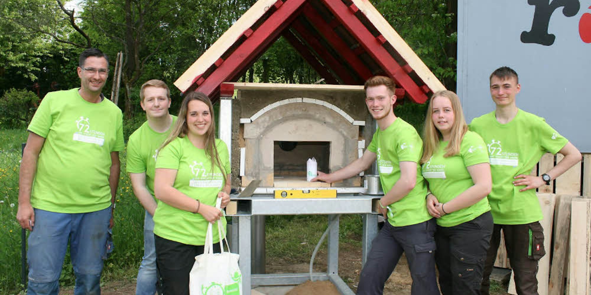 Verglichen damit war das Vorhaben der zehnköpfigen Gruppe von Jugendlichen des Pfadfinderstamms „Weisswölfe“ Rohr-Lindweiler-Reetz am Bürgerhaus räumlich überschaubarer, aber nicht minder ambitioniert. „Wir bauen einen Outdoor-Backofen fürs Dorf“, so Stefan Reetz, Leiter der Oberstufe der Pfadfinder. Bereits Wochen vorher hatten die 16 bis 21 Jahre alten „Weisswölfe“ den Ofen geplant und das benötigte Material – beispielsweise die Schamottsteine für die Innenverkleidung – beschafft.