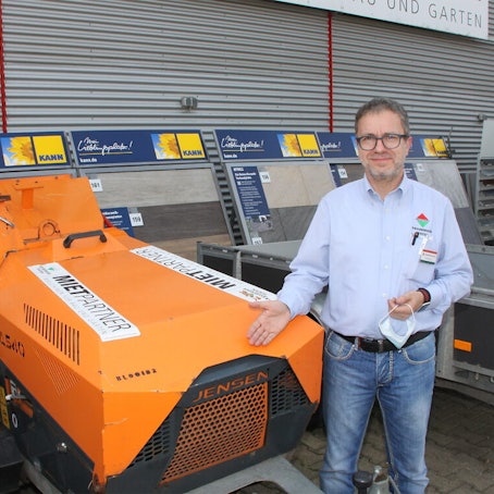 An den zwei Bürocontainern, die direkt vor dem Hotel stehen, herrscht ein freundlicher Umgangston. „Dort sind Gummistiefel, Handschuhe, auf der anderen Seite Schippen und Eimer“, weist Steffen Palmroth, besser unter seinem Spitznamen „Palme“ bekannt, die freiwilligen Helfer ein, denen er zuvor ihr Einsatzgebiet gegeben hat. „An der Jugendherberge ist ein Trupp unterwegs, um die Gullys zu reinigen, damit beim nächsten Regen das Wasser wieder abfließen kann“, sagt er. Das Material, mit dem die Helferinnen und Helfer ausgestattet werden, stammt aus Spenden, die hier angeliefert wurden.