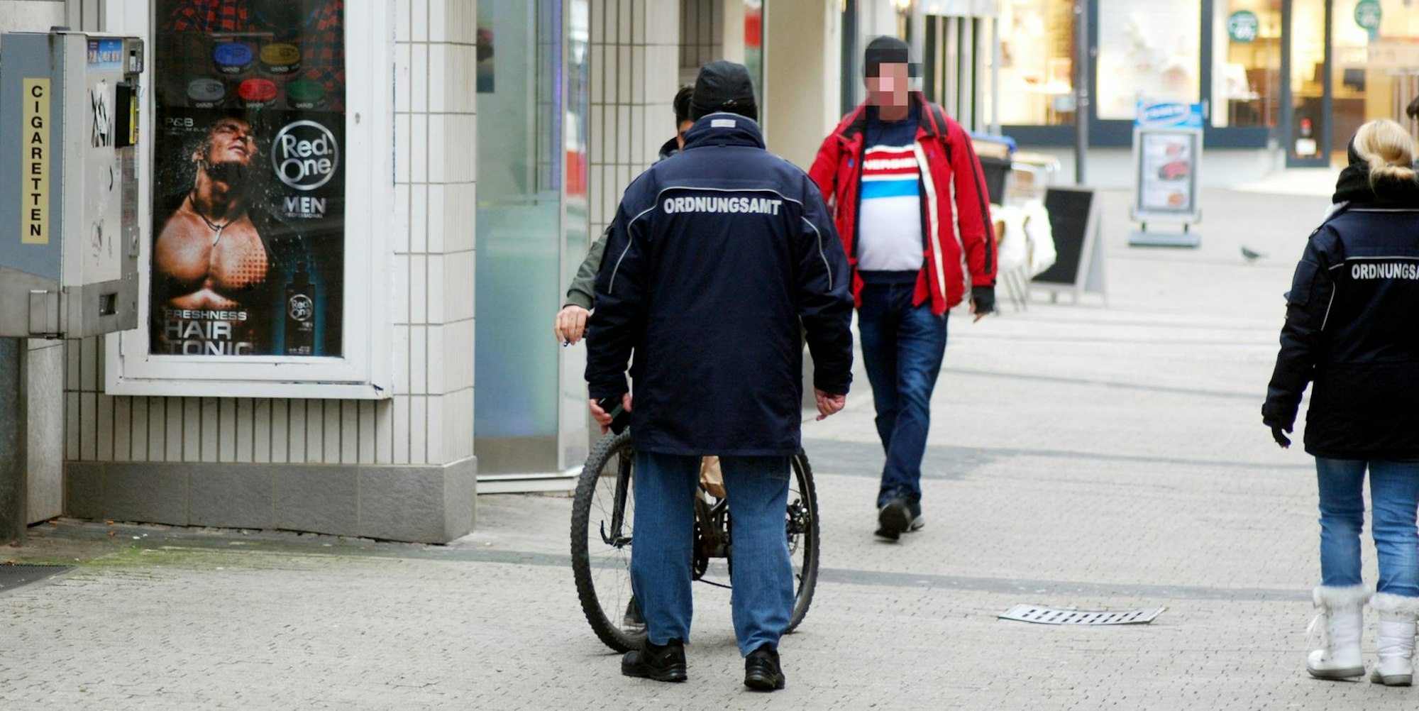 Ordnungsdienstmitarbeiter sprechen auch Radfahrer an, die verbotenerweise in der Fußgängerzone unterwegs sind.