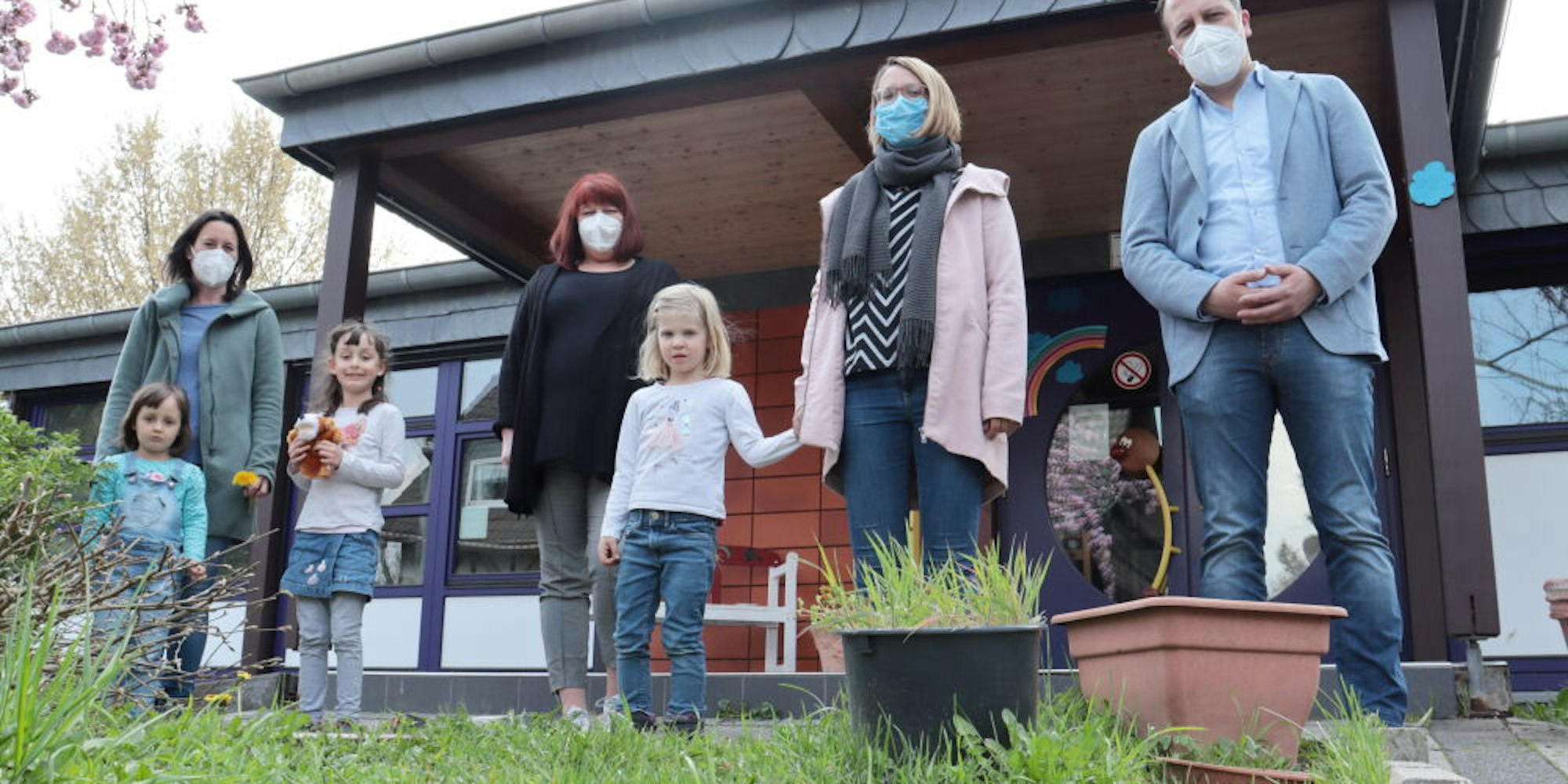 Von ihrem Ärger über Hundekot berichteten Christine Steffin (l.) und Anne Limbrock (3.v.l.) aus dem Elternbeirat mit Kita-Leiterin Gabriele Nohr Bürgermeister Sacha Reichelt.