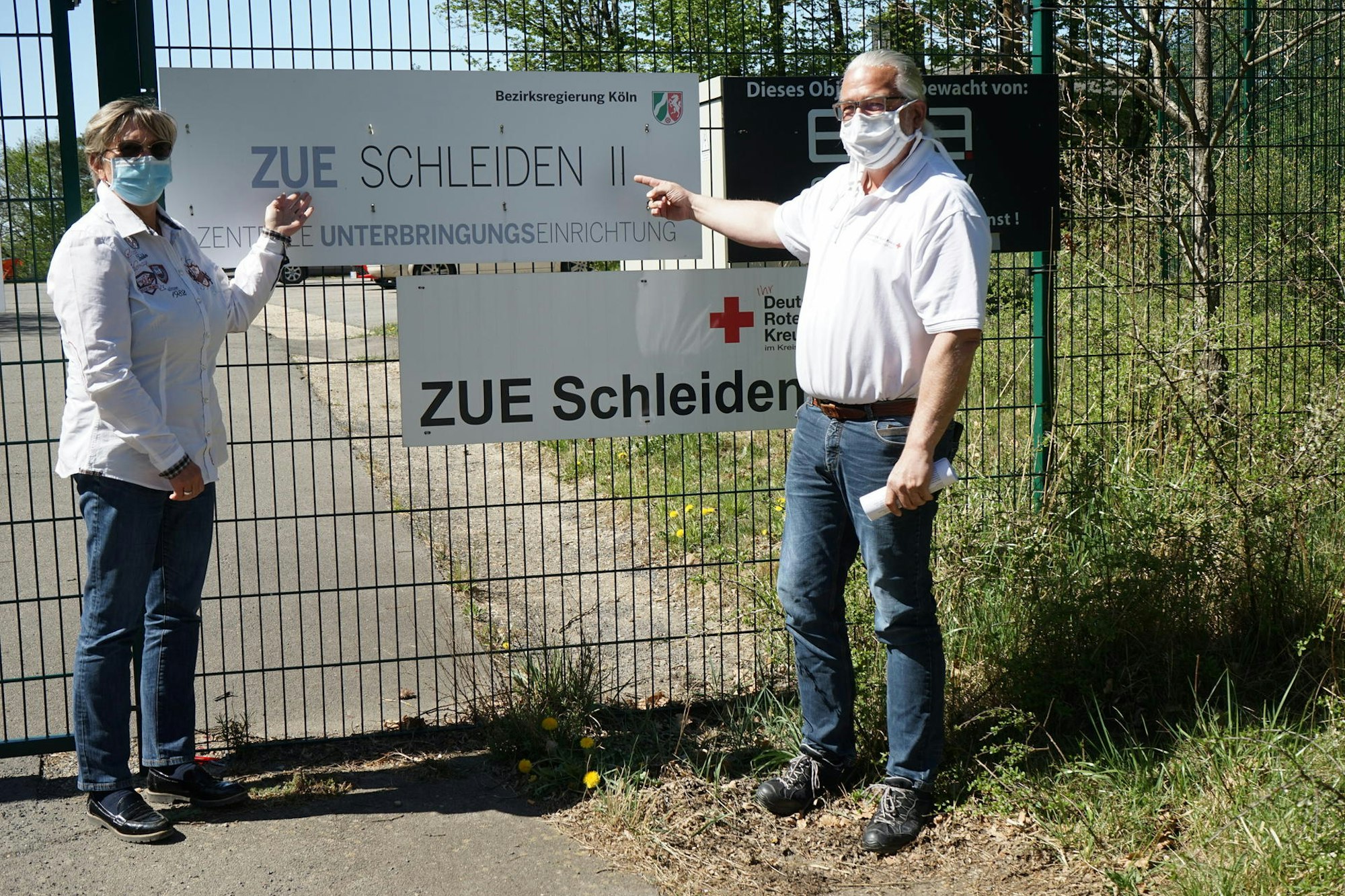 In der Vogelsanger Zentralen Unterbringungseinrichtung sind der ehemalige Bürgermeister Ralf Hergarten für das Deutsche Rote Kreuz und die Einrichtungsleiterin der Bezirksregierung Köln, Gabriele Ernst, zuständig.