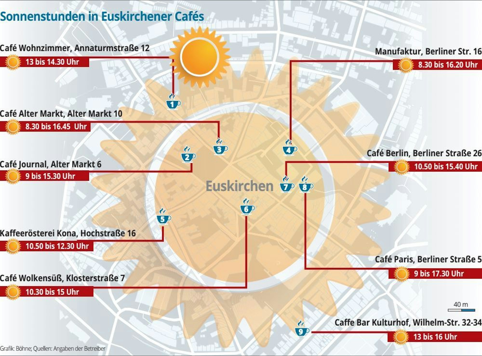 Cafés in EuskirchenWann man wo in der Sonne sitzt