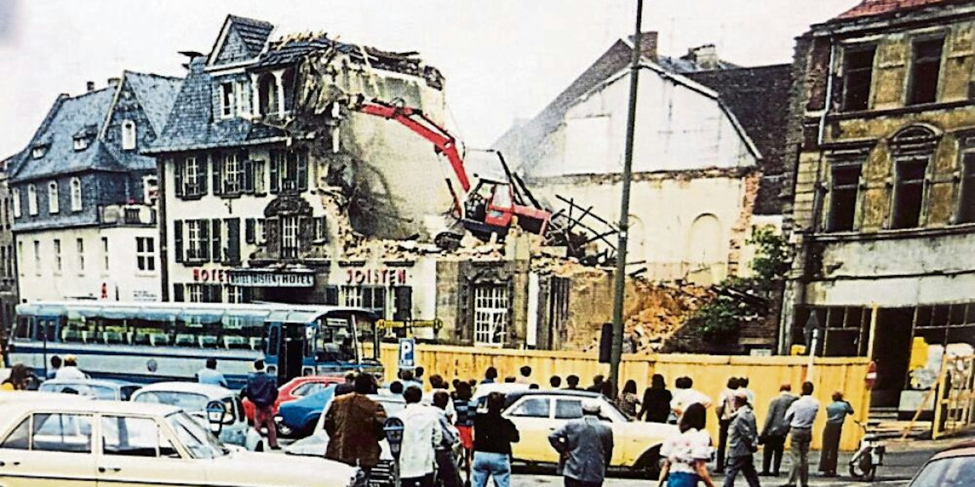 Am 13. Juli 1973 beginnen Bagger mit dem Abriss des Hotel Joisten am Alten Markt in Euskirchen.