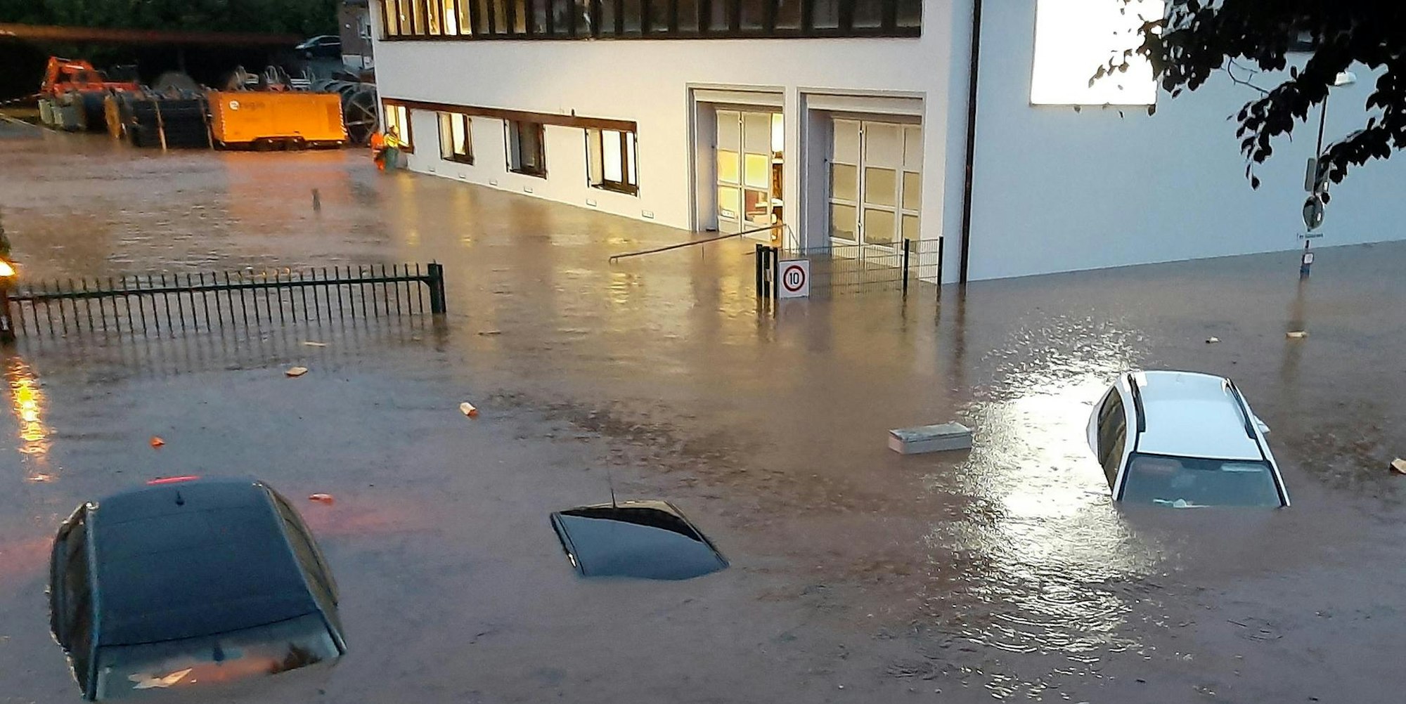 Komplett überflutet war das e-Regio-Gelände an der Hindenburgstraße in Kall in der Nacht zum 15. Juli 2021.