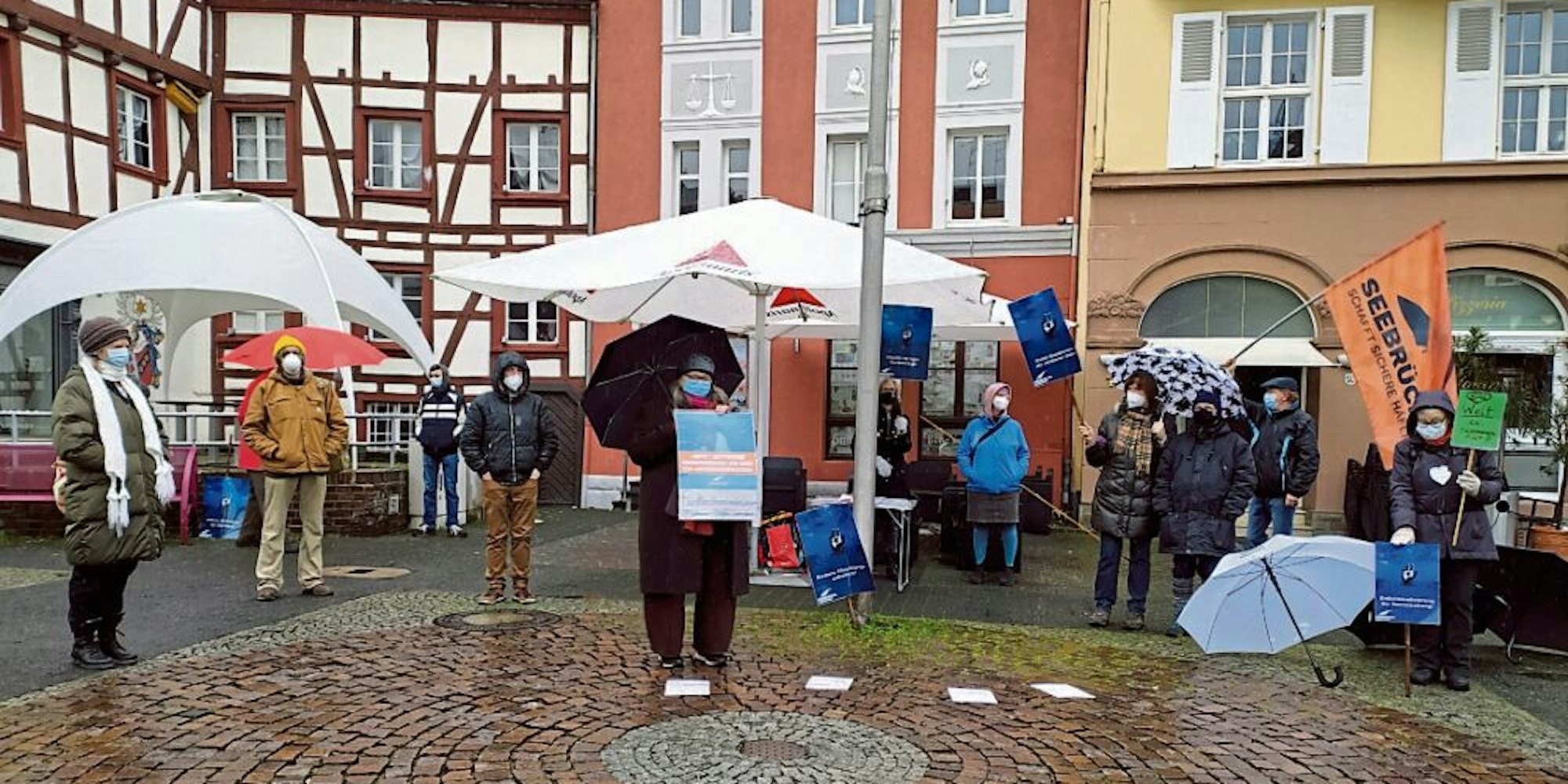 Mitglieder der Euskirchener Seebrücke demonstrierten anlässlich des europaweiten Aktionstags ihrer Initiative auf dem Alten Markt für ihr Anliegen.