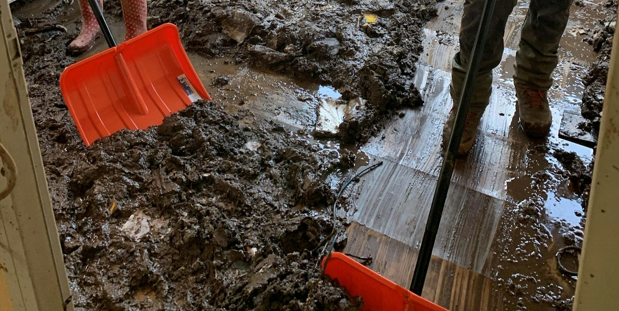 Braune Masse mit unklarem Inhalt: In vielen Gebäuden stand nach der Flut eine zentimeterhohe Schlammschicht.