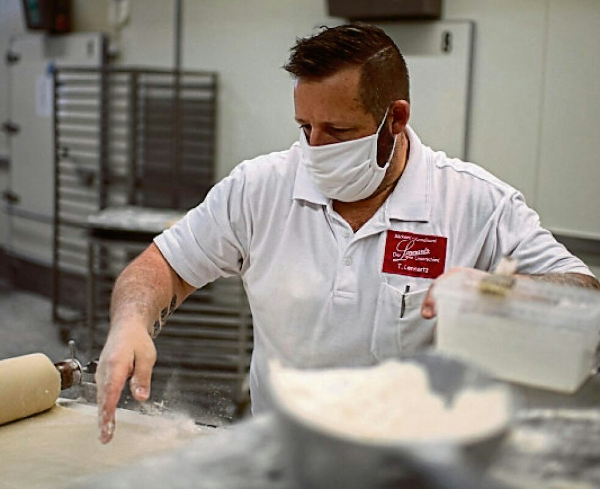 Es sind die kleinen Geheimnisse, die seit Jahrzehnten im exklusiven Kreis weitergegeben werden. Mit einem Geheimnis geht mehr als 30 Kilometer entfernt Torsten Lennartz ganz offen um: Ruhe. In aller Hektik, in allem Stress, der kurz vor dem Jahreswechsel in der Backstube herrsche – der Teig brauche seine Ruhezeiten. Gleich mehrfach darf die süße Hefemasse auf dem Weg vom Rührgerät zum Backofen eine kleine Pause einlegen. „Diese Ruhezeiten schmeckt man“, versichert Lennartz, der wie das gesamte Team beim Backen Mund-Nasenschutz trägt.