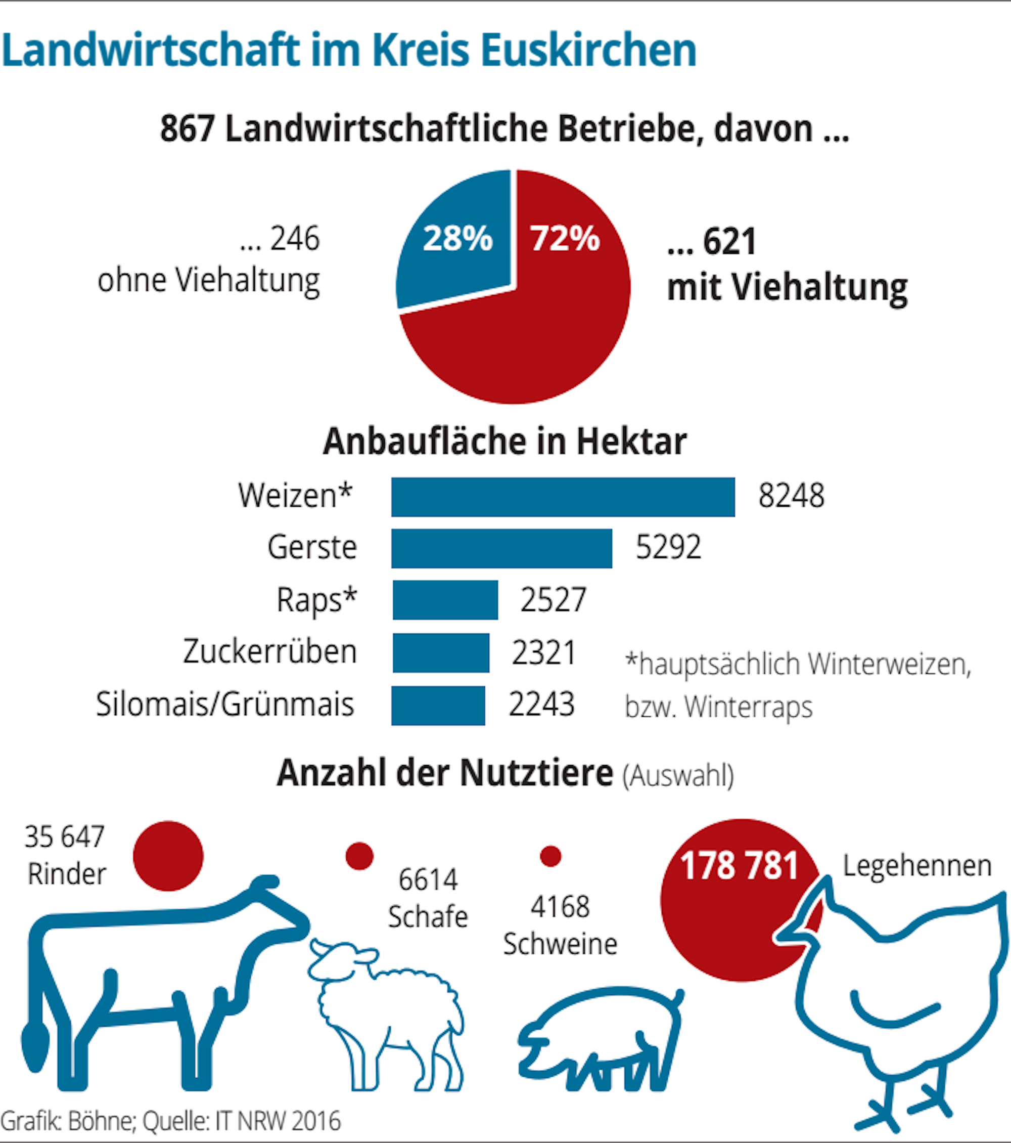 „Und wenn in Euskirchen schlecht geerntet wird, heißt es nicht, dass der Euskirchener Landwirt mehr Geld für seine Ernte bekommt“, sagt Heinrich Brockerhoff. Er ist der Geschäftsführer der Kreisstellen Aachen, Düren und Euskirchen der Landwirtschaftskammer. Zwar betrifft die Klimakrise alle Landwirte in NRW, aber manche Regionen trifft es härter. Eine davon ist die Zülpicher Börde, die im Regenschatten der Eifel liegt und mit knapp 600 Millimetern Niederschlag pro Jahr die niederschlagärmste Region in NRW ist, heißt es im neuen Klimawandelanpassungskonzept des Kreises Euskirchen.