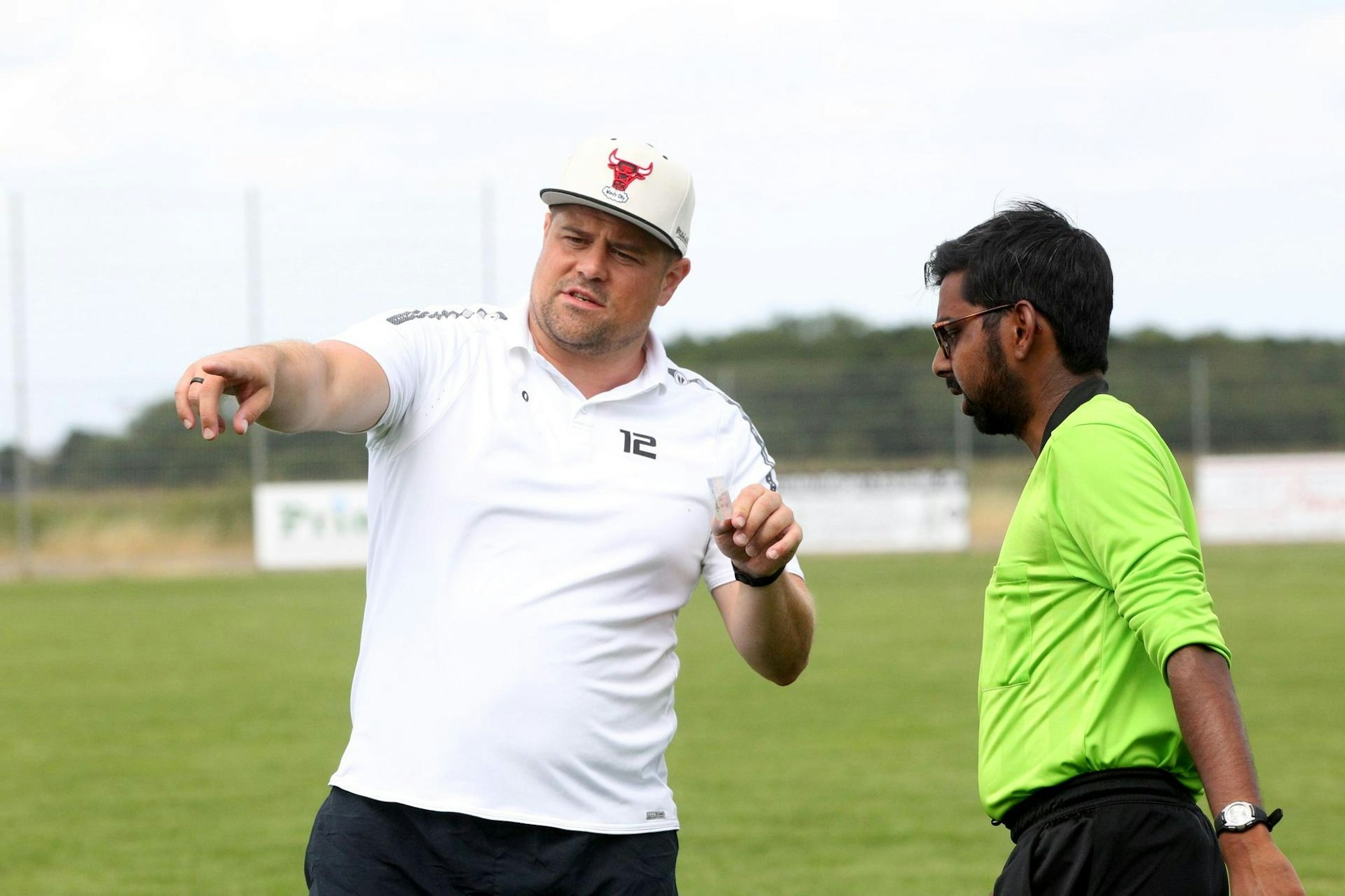 Im Gespräch: Sascha Hillger mit Schiedsrichter Michael Schnitzler.