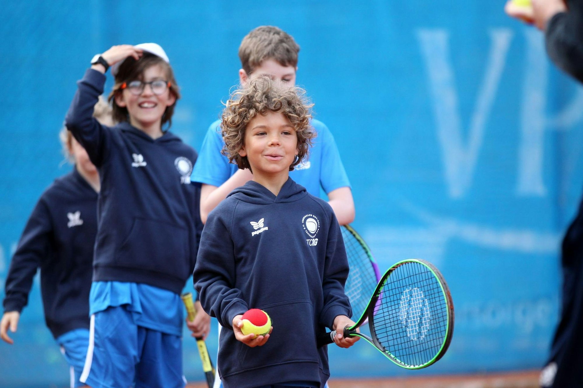 Mit viel Spaß sind die jungen Tennisspieler bei der Sache.
