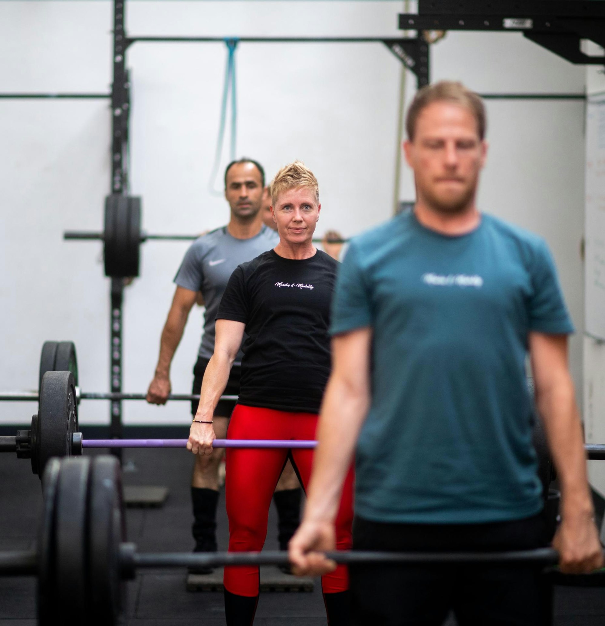 Es wird nicht nur mit dem eigenen Körpergewicht, sondern auch mit Langhanteln trainiert.