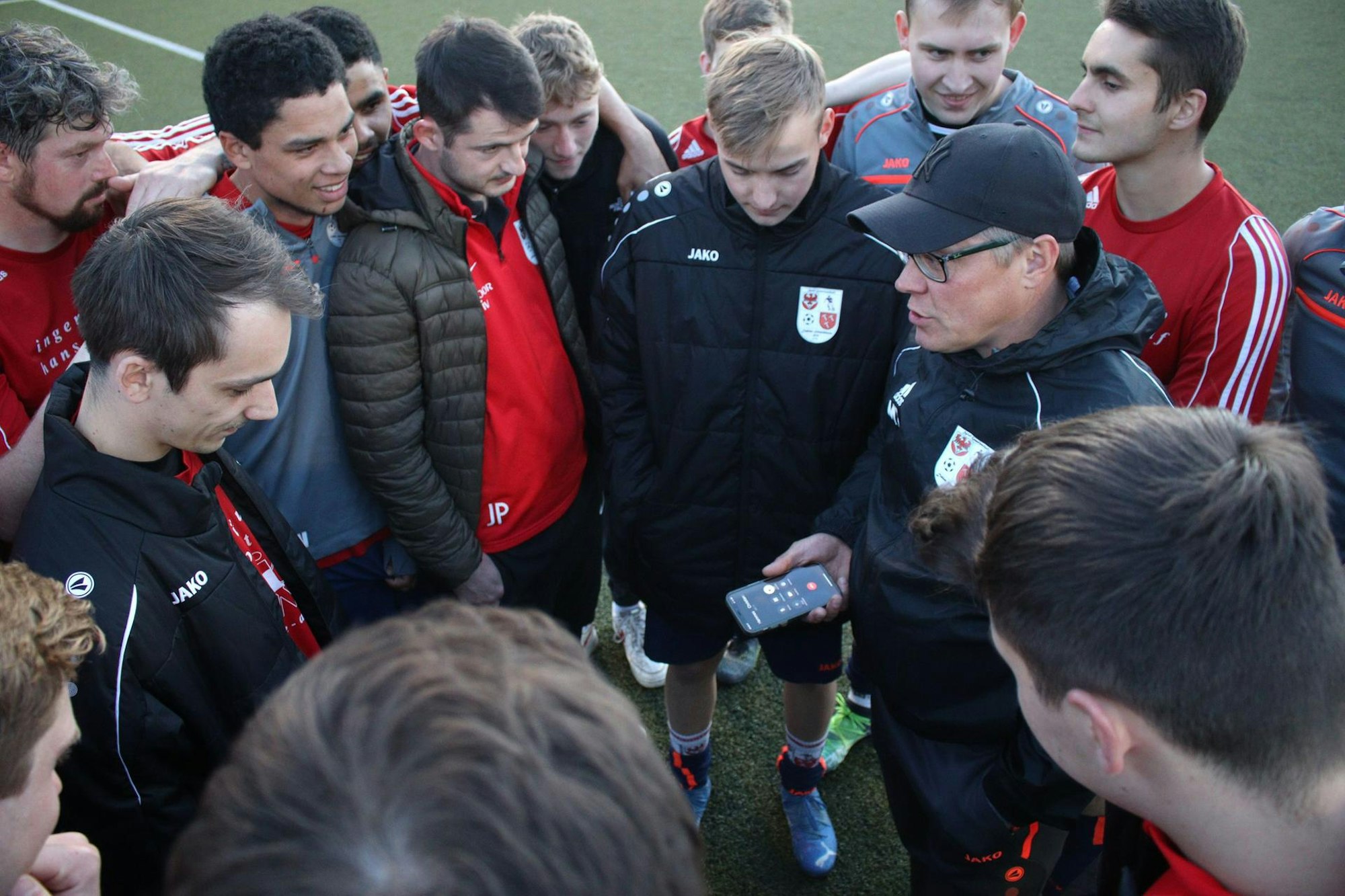 Nach dem Spiel entpuppte sich dann Christian Hammes, Trainer des SV Sötenich und mit Marcel Timm befreundet, als Live-Kommentator aus Rinnen: Denn dort gab es fünf Minuten Nachspielzeit, das Spiel lief also noch. Um Timm, der den Lautsprecher an seinem Handy eingeschaltet hatte, versammelte sich seine Mannschaft und lauschte Hammes’ Bericht aus Rinnen.