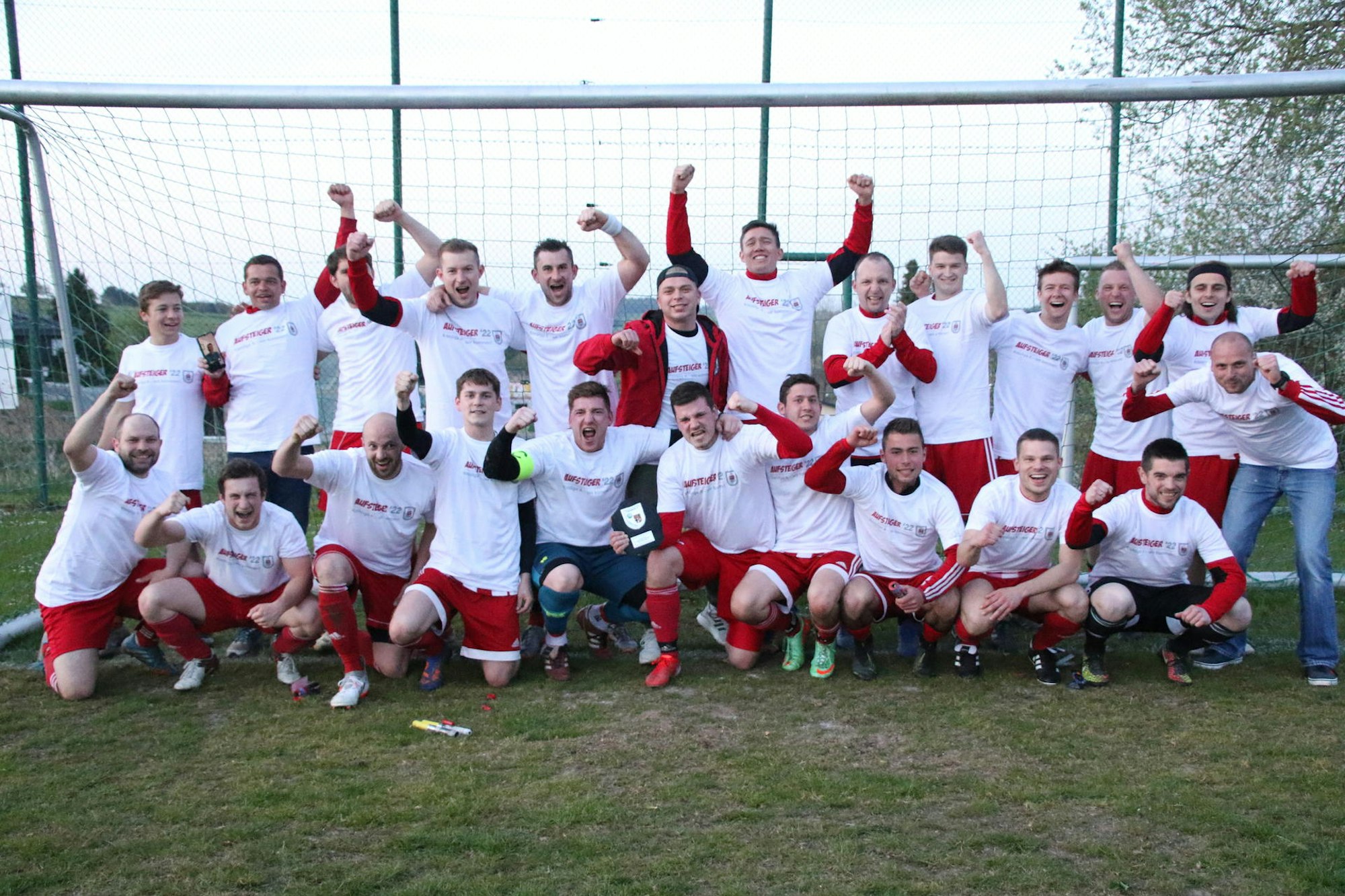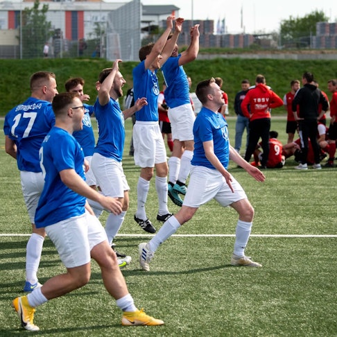 Nach dem Schlusspfiff brachen dann die Dämme: Es gab Sektduschen und bengalisches Feuer. Doch Thomas Schirmer blieb sachlich: „Rinnen hat uns viel abverlangt. Wir haben aber nicht die Köpfe nach dem Rückstand hängen gelassen.“ Schirmer glaubt, der Aufstieg liegt auch an der stark besetzten Bank und dem Zusammenhalt in der Mannschaft.