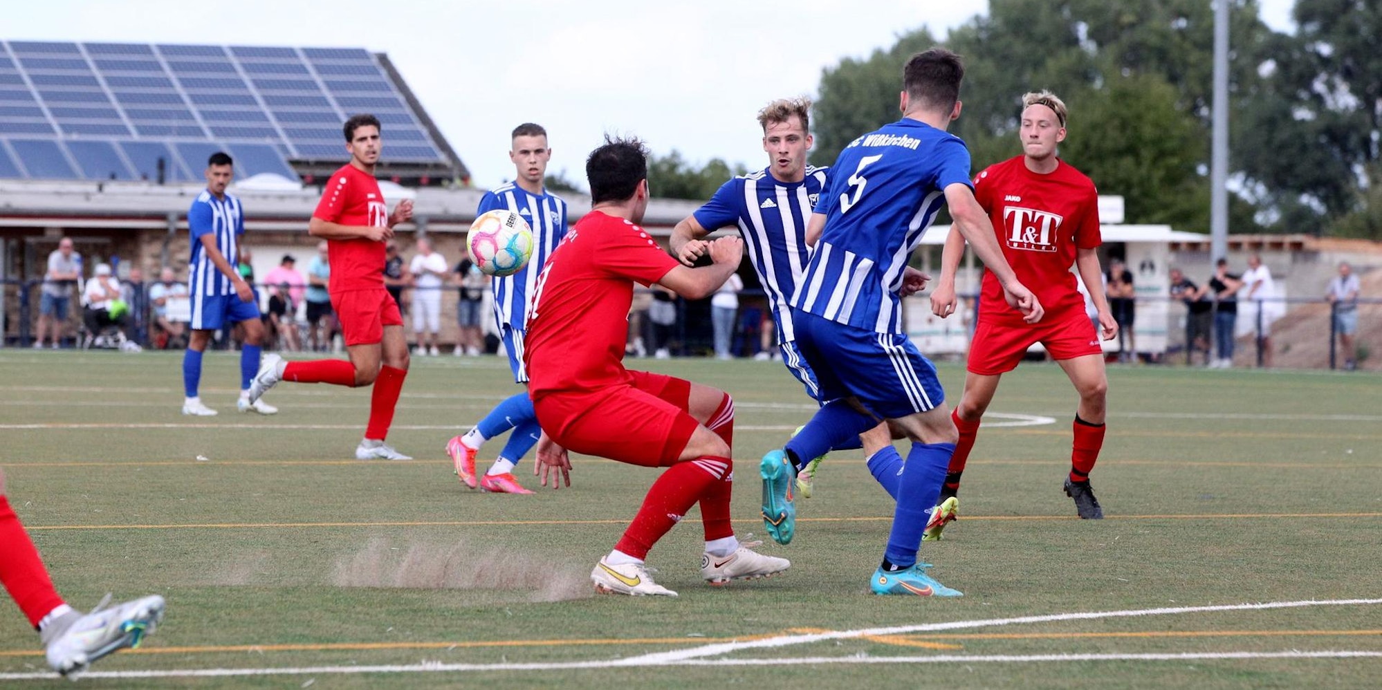 Und die junge Truppe legte engagiert vor. „Erft war in den ersten 20 Minuten gieriger“, zollte Wißkirchens Trainer Kevin Greuel dem Gegner Respekt. Nach rund 16 Minuten forderten die Erft-Anhänger den ersten Elfmeter. „Klarer geht’s nicht“, war auch von Wißkirchener Fans zu hören. Diese durften dann aber zuerst jubeln: Nach gut einer halben Stunde schoss Daniel Blum sein drittes Saisontor.