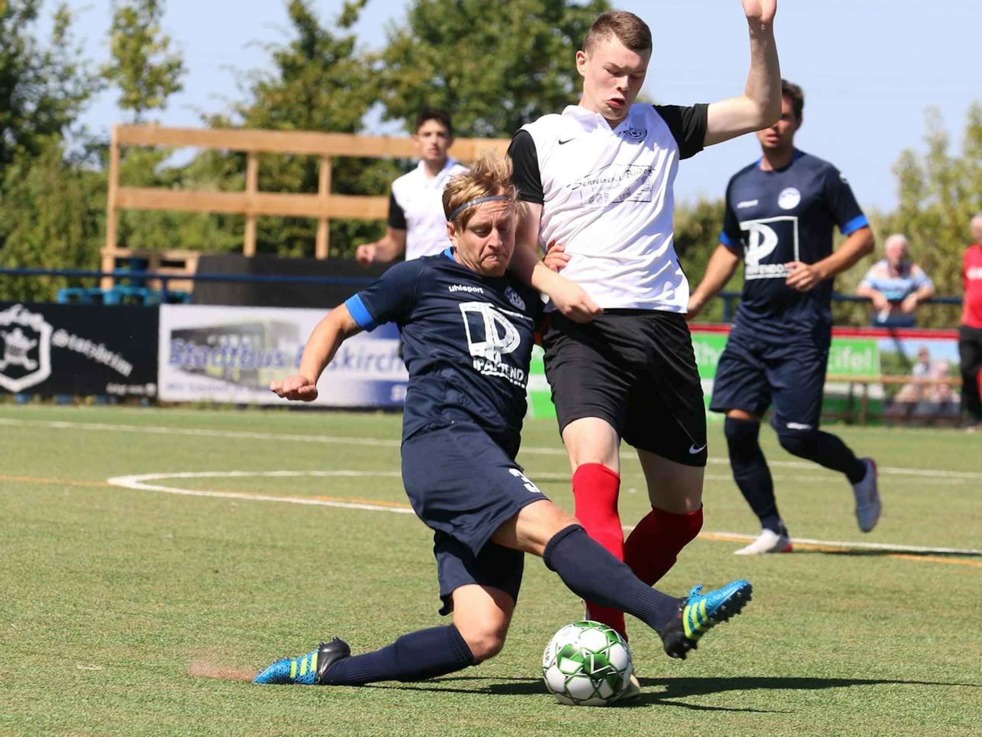 Euskirchen-Stotzheim – Kreispokal-Viertelfinale: SC Wißkirchen – SV Frauenberg 2:4 n.V. (0:1, 2:2, 2:3). Marcus Becker, Marco Bramer, Yannik Hergarten, Nico Lehner, Johannes Roth, Alexander Rückert und Pascal Schröder: Gleich sieben Spieler sind im Sommer von Wißkirchen nach Frauenberg gegangen. In die andere Richtung wechselte Tobias Esser. Es war also ein besonderes Aufeinandertreffen schon zwei Wochen vor Saisonstart, auch wenn nur Becker, Lehner, Rückert und Hergarten auf der einen und Esser auf der anderen Seite auf dem Platz standen. Hinzu kam noch das Bruderduell Chris (Frauenberg) und Stefan Hilger (Wißkirchen), die beide eingewechselt wurden.