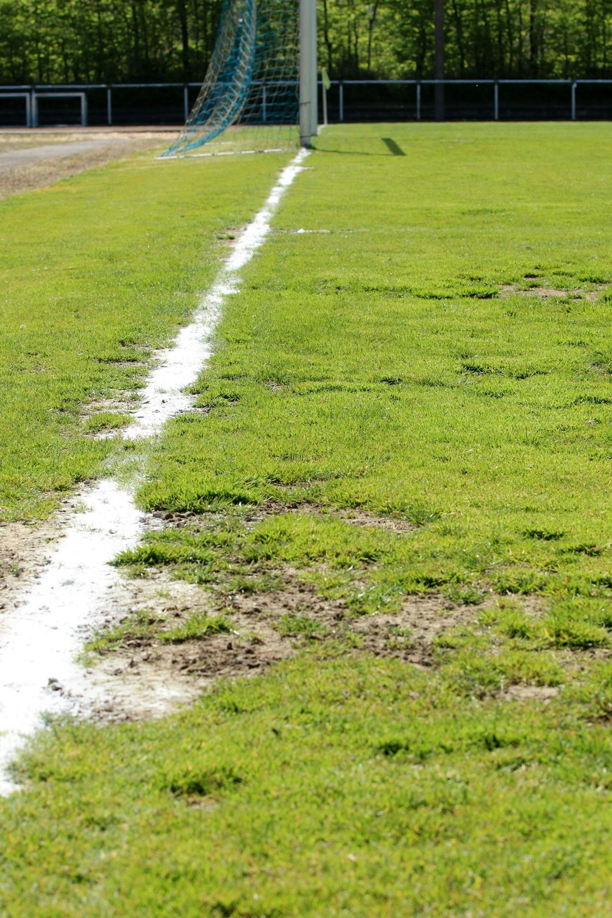 Wandert der Kopf des Betrachters jedoch weiter, sieht man hinter dem Klubheim bislang unbekannte Flutlichtmasten aufragen. Diese umranden den neuen Kunstrasenplatz, der bis auf die noch fehlenden Fangzäune und Tore fertiggestellt ist und auf dem in Kürze die ersten Bälle rollen werden.