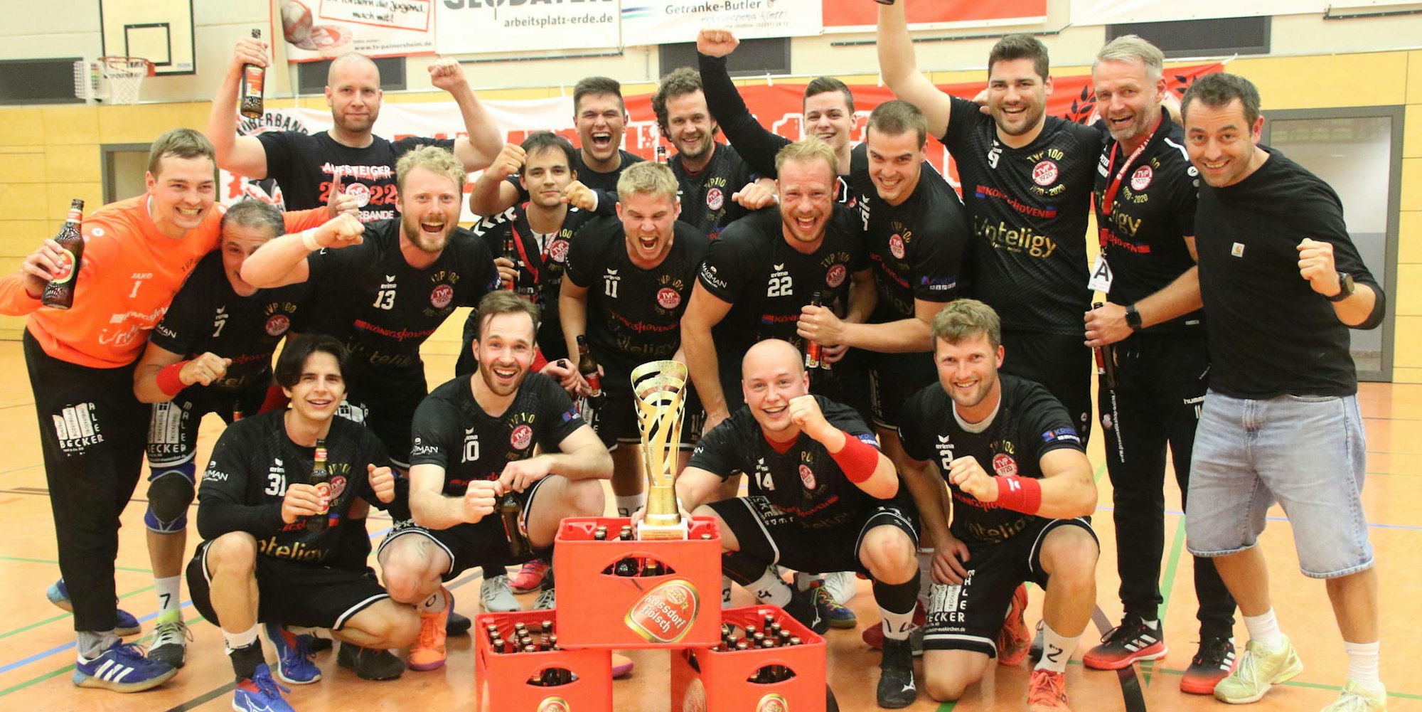 Feierstimmung nach dem Pokalerfolg: Die TVP-Spieler achten auf den Flüssigkeitshaushalt.