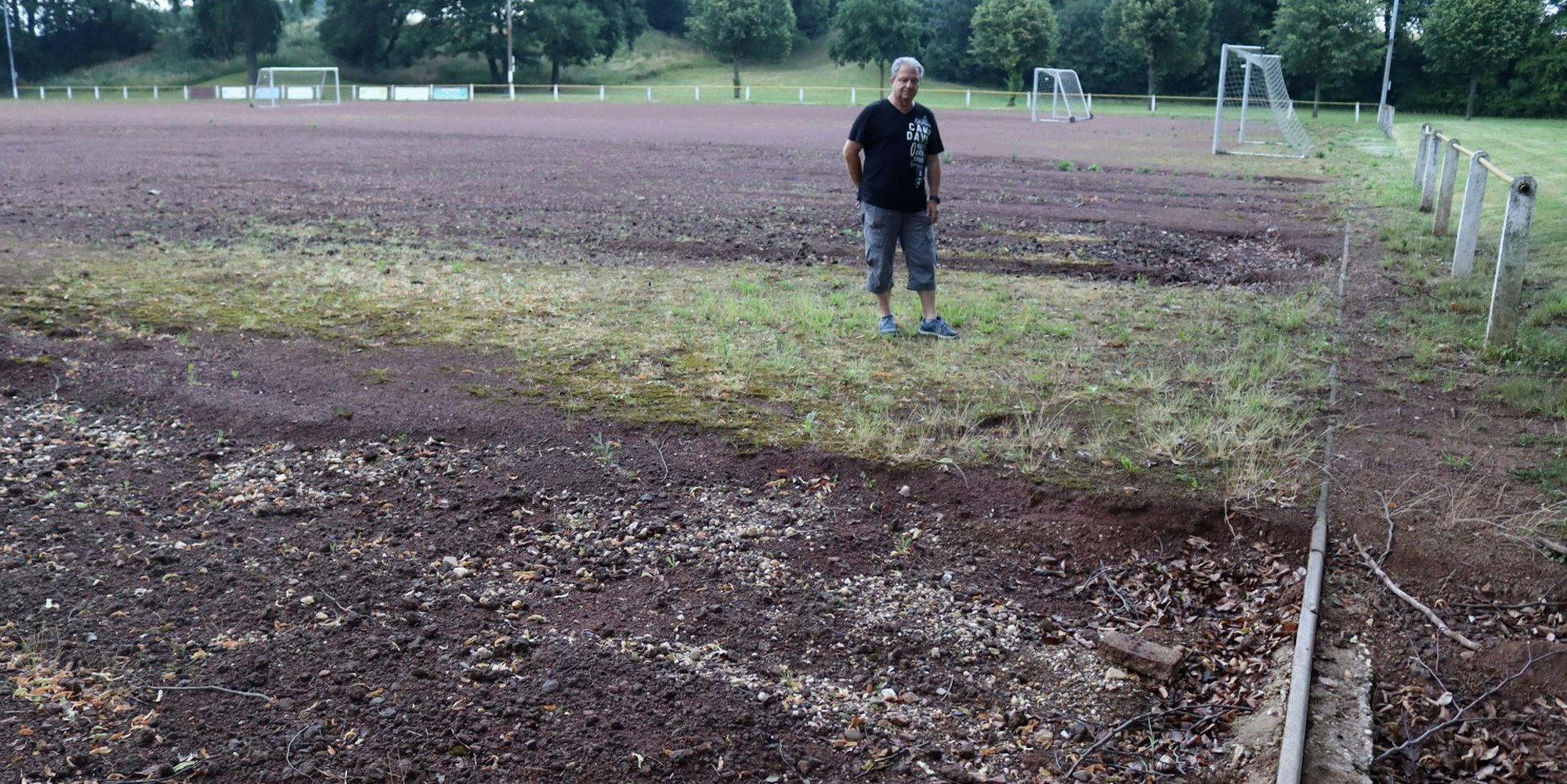 Die Flutkatastrophe hat dem Aschenplatz des SV Nemmenich arg zugesetzt.
