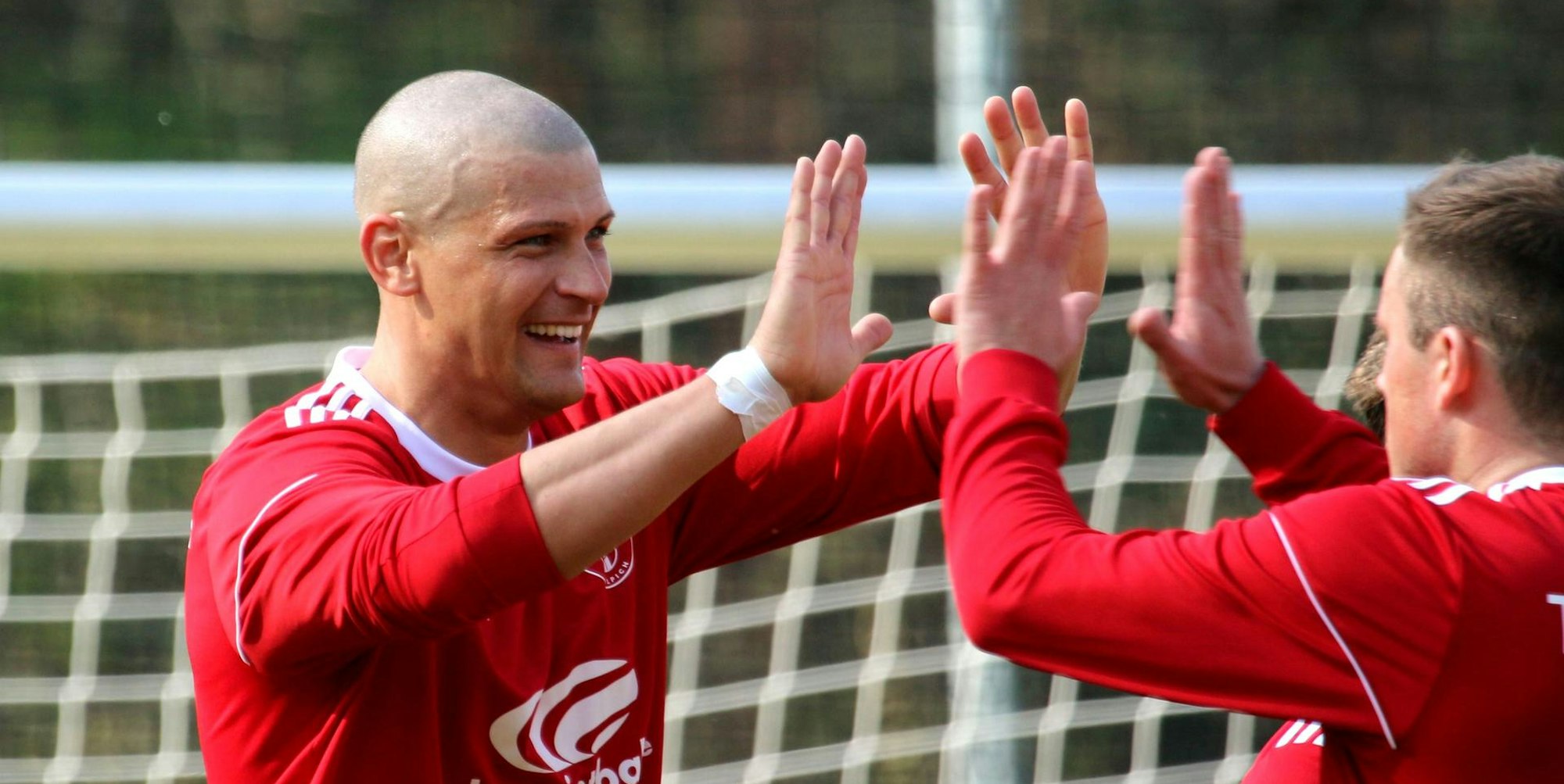 Neuer Look, alte Treffsicherheit: Zülpichs David Sasse freut sich über seinen Führungstreffer gegen den SV Frauenberg.