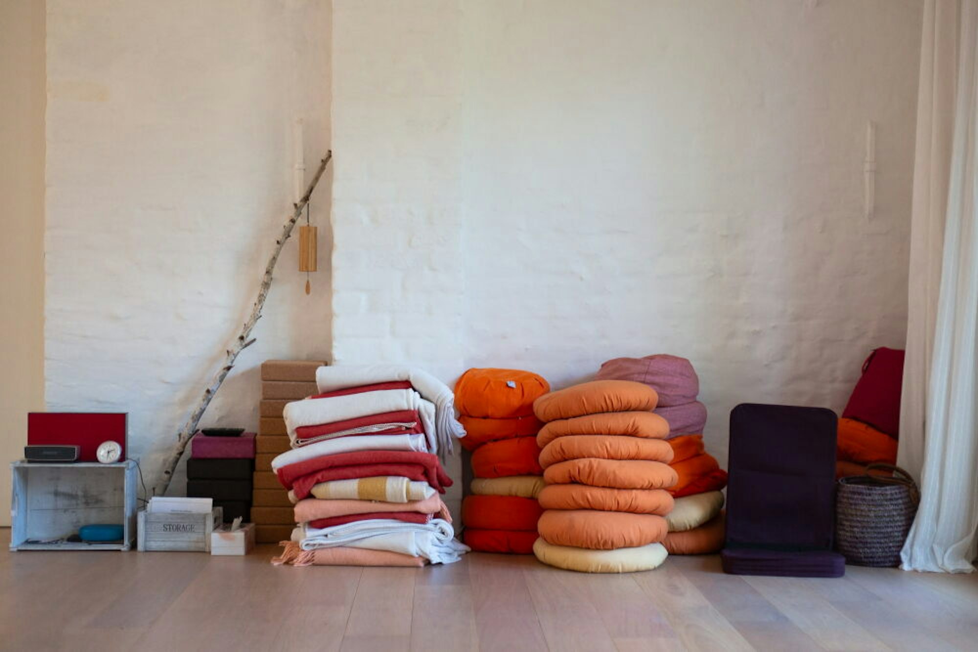 Jede Menge Kissen und Decken: Bequem soll es beim Yoga und bei der Meditation in Birgit Hegemanns Praxis im Pützfelder Hof schon sein.