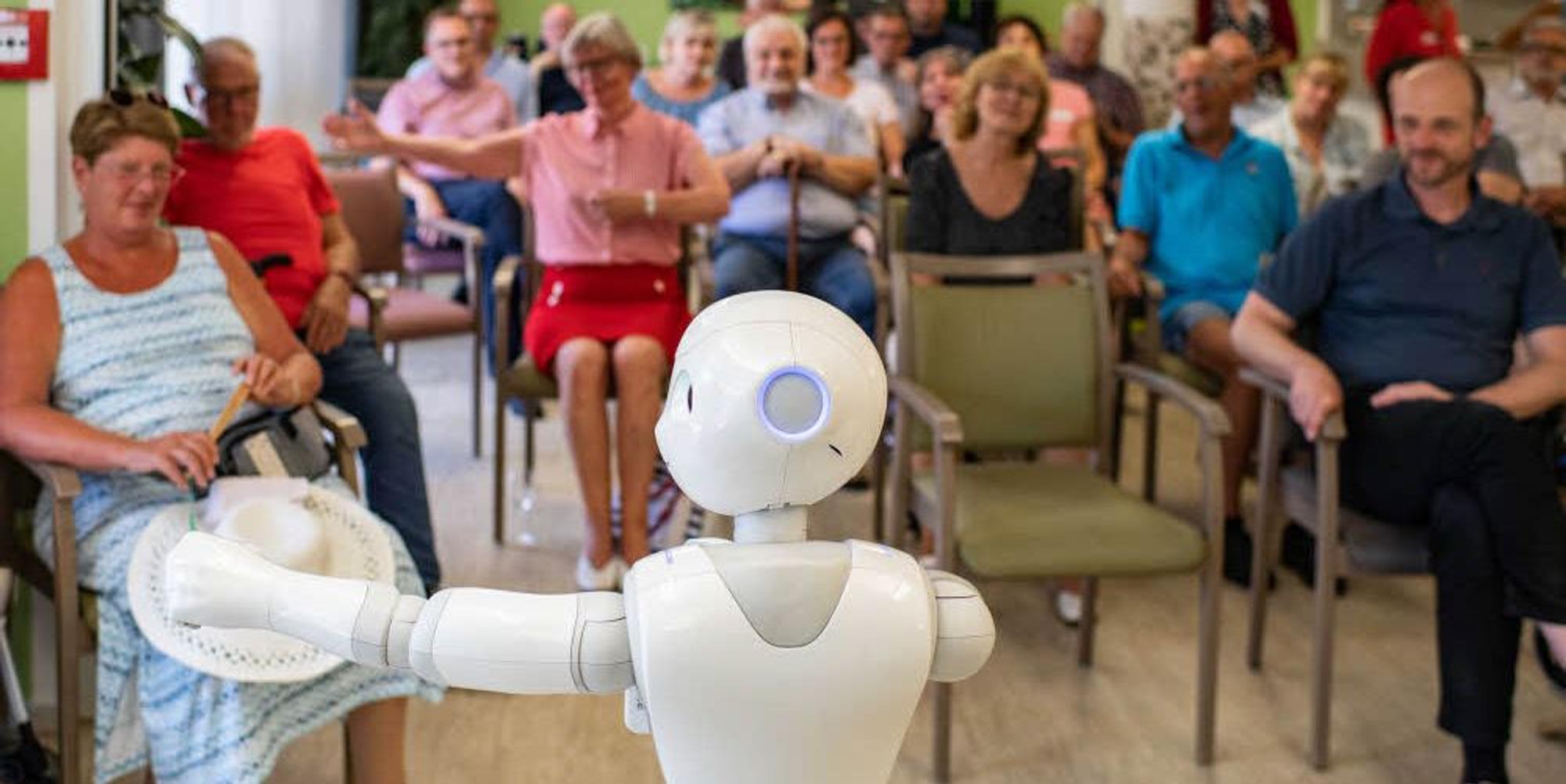 Der humanoide Roboter Pepper animiert die Besucher im Seniorenpflegezentrum Integra zum Mitmachen.